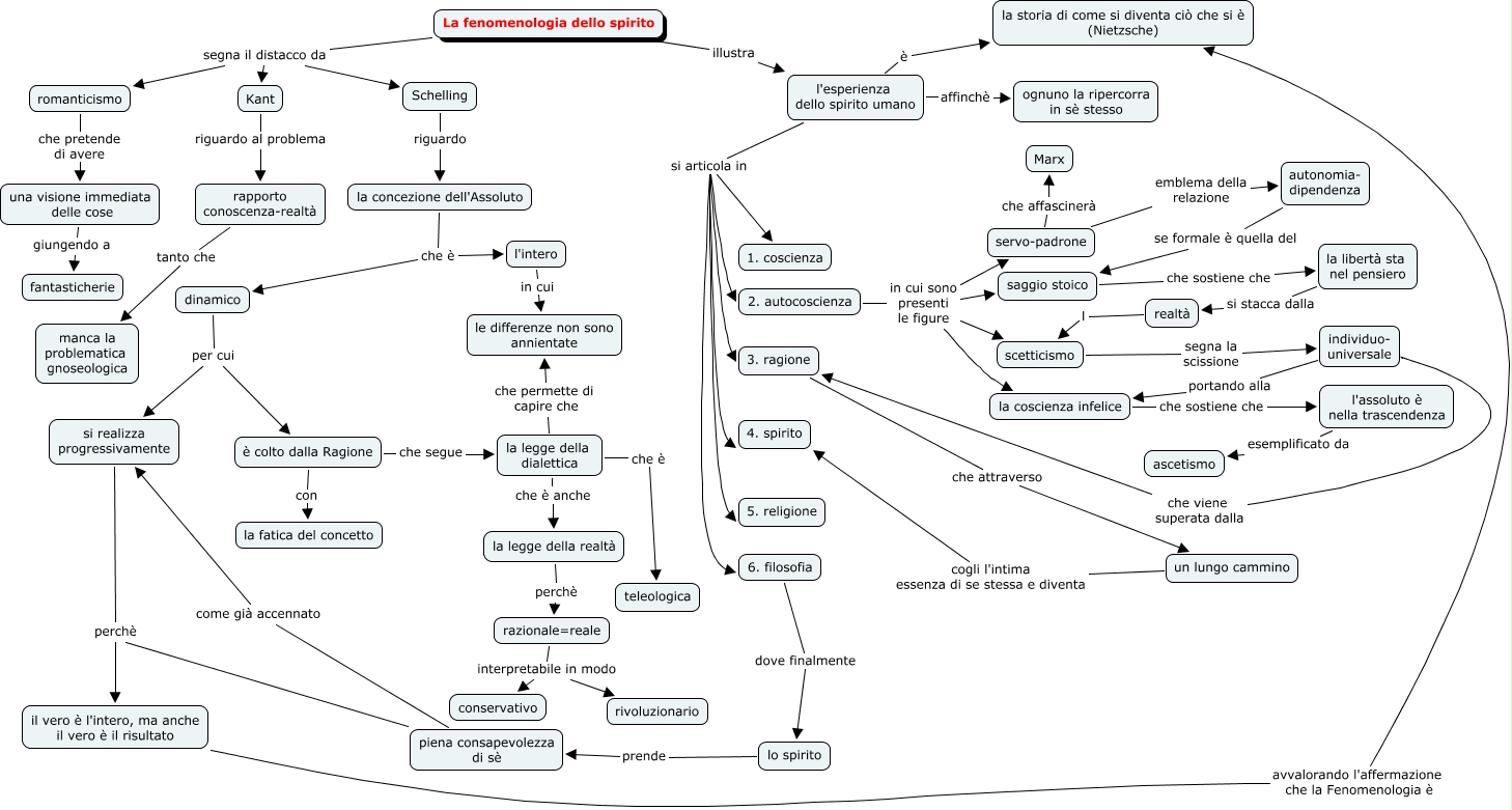 Questa Cmap, creata con IHMC CmapTools, contiene informazioni relative a: fenomenologia dello spirito MZ, individuo- universale che viene superata dalla 3. ragione, scetticismo segna la scissione individuo- universale, la legge della realtà perchè razionale=reale, saggio stoico che sostiene che la libertà sta nel pensiero, l'esperienza dello spirito umano si articola in 3. ragione, rapporto conoscenza-realtà tanto che manca la problematica gnoseologica, l'esperienza dello spirito umano si articola in 1. coscienza, si realizza progressivamente perchè il vero è l'intero, ma anche il vero è il risultato, una visione immediata delle cose giungendo a fantasticherie, piena consapevolezza di sè come già accennato si realizza progressivamente, un lungo cammino cogli l'intima essenza di se stessa e diventa 4. spirito, è colto dalla Ragione con la fatica del concetto, l'esperienza dello spirito umano si articola in 2. autocoscienza, l'esperienza dello spirito umano è la storia di come si diventa ciò che si è (Nietzsche), razionale=reale interpretabile in modo conservativo, l'assoluto è nella trascendenza esemplificato da ascetismo, servo-padrone emblema della relazione autonomia- dipendenza, La fenomenologia dello spirito segna il distacco da Schelling, 2. autocoscienza in cui sono presenti le figure servo-padrone, autonomia- dipendenza se formale è quella del saggio stoico