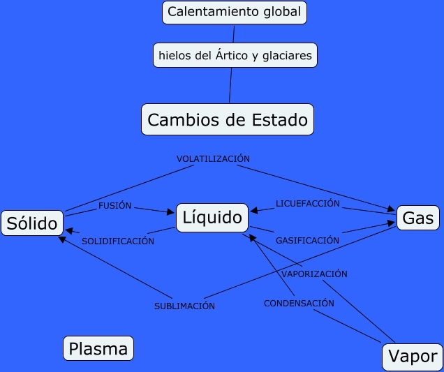 Este Cmap, tiene información relacionada con: Química, Sólido FUSIÓN Líquido, Gas SUBLIMACIÓN Sólido, Sólido VOLATILIZACIÓN Gas, Líquido SOLIDIFICACIÓN Sólido, Calentamiento global Cambios de Estado, Líquido VAPORIZACIÓN Vapor, Gas LICUEFACCIÓN Líquido, Vapor CONDENSACIÓN Líquido, Líquido GASIFICACIÓN Gas