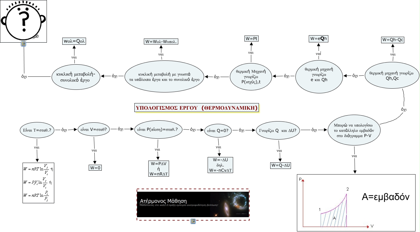 Αυτός ο εννοιολογικός χάρτης, που δημιουργήθηκε με το IHMC Cmap Tools, περιέχει πλήροφορίες που σχετίζονται με: work.cmap, Γνωρίζω Q και ΔU? ναι W=Q-ΔU, θερμική μηχανή γνωρίζω Qh,Qc όχι θερμική μηχανή γνωρίζω e και Qh, είναι P(πίεση)=σταθ.? όχι είναι Q=0?, Γνωρίζω Q και ΔU? όχι Μπορώ να υπολογίσω το κατάλληλο εμβαδόν στο διάγραμμα P-V, κυκλική μεταβολή με γνωστά τα υπόλοιπα έργα και το συνολικό έργο όχι κυκλική μεταβολή- συνολικό έργο, κυκλική μεταβολή με γνωστά τα υπόλοιπα έργα και το συνολικό έργο ναι W=Wολ-Wυπολ., είναι Q=0? ναι W=-ΔU δηλ. W=-nCvΔΤ, θερμική μηχανή γνωρίζω e και Qh ναί W=eQh, θερμική μηχανή γνωρίζω e και Qh όχι θερμική Μηχανή γνωρίζω P(ισχύς),t, Μπορώ να υπολογίσω το κατάλληλο εμβαδόν στο διάγραμμα P-V ναι, θερμική Μηχανή γνωρίζω P(ισχύς),t όχι κυκλική μεταβολή με γνωστά τα υπόλοιπα έργα και το συνολικό έργο, είναι V=σταθ? ναι W=0, είναι V=σταθ? όχι είναι P(πίεση)=σταθ.?, Είναι Τ=σταθ.? όχι είναι V=σταθ?, κυκλική μεταβολή- συνολικό έργο ναι wολ=Qολ, θερμική Μηχανή γνωρίζω P(ισχύς),t ναι W=Pt, θερμική μηχανή γνωρίζω Qh,Qc ναι W=Qh-Qc, είναι P(πίεση)=σταθ.? ναι W=PΔV ή W=nRΔΤ, κυκλική μεταβολή- συνολικό έργο όχι, είναι Q=0? όχι Γνωρίζω Q και ΔU?