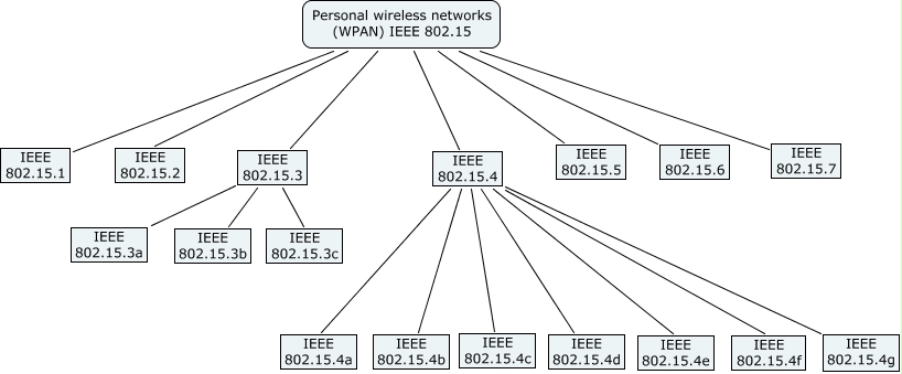This Concept Map, created with IHMC CmapTools, has information related to: WPAN, IEEE 802.15.4 IEEE 802.15.4f, IEEE 802.15.4 IEEE 802.15.4b, Personal wireless networks (WPAN) IEEE 802.15 IEEE 802.15.6, Personal wireless networks (WPAN) IEEE 802.15 IEEE 802.15.1, Personal wireless networks (WPAN) IEEE 802.15 IEEE 802.15.5, IEEE 802.15.3 IEEE 802.15.3c, Personal wireless networks (WPAN) IEEE 802.15 IEEE 802.15.3, IEEE 802.15.4 IEEE 802.15.4g, Personal wireless networks (WPAN) IEEE 802.15 IEEE 802.15.4, Personal wireless networks (WPAN) IEEE 802.15 IEEE 802.15.2, IEEE 802.15.3 IEEE 802.15.3a, IEEE 802.15.4 IEEE 802.15.4e, IEEE 802.15.3 IEEE 802.15.3b, IEEE 802.15.4 IEEE 802.15.4c, IEEE 802.15.4 IEEE 802.15.4d, Personal wireless networks (WPAN) IEEE 802.15 IEEE 802.15.7, IEEE 802.15.4 IEEE 802.15.4a