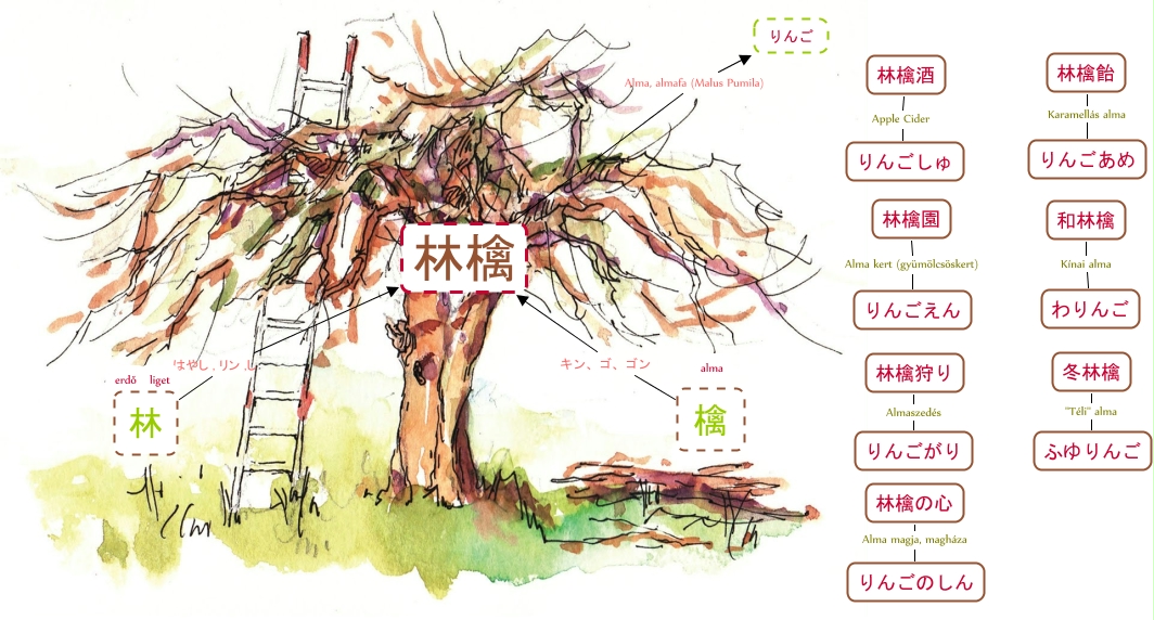This Concept Map, created with IHMC CmapTools, has information related to: 20121122 Ringo KE, 林檎狩り Almaszedés りんごがり, 林檎園 Alma kert (gyümölcsöskert) りんごえん, 檎 キン、ゴ、ゴン 林檎, 林 はやし , リン ,し 林檎, 林檎 Alma, almafa (Malus Pumila) りんご, 冬林檎 "Téli" alma ふゆりんご, 林檎の心 Alma magja, magháza りんごのしん, 和林檎 Kínai alma わりんご, 林檎飴 Karamellás alma りんごあめ, 林檎酒 Apple Cider りんごしゅ