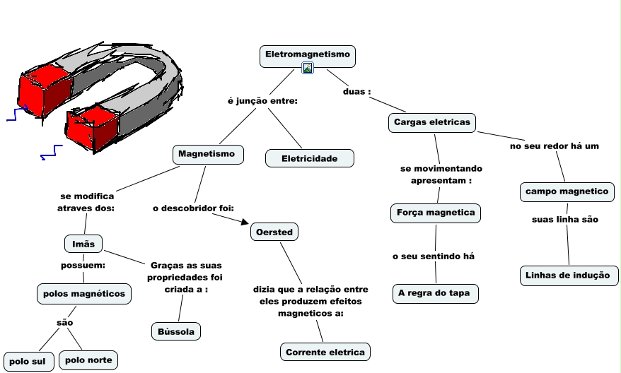 Esse mapa conceitual, produzido no IHMC CmapTools, tem a informação relacionada a: 22-ketlen-mn, Eletromagnetismo duas : Cargas eletricas, Magnetismo se modifica atraves dos: Imãs, Força magnetica o seu sentindo há A regra do tapa, Oersted dizia que a relação entre eles produzem efeitos magneticos a: Corrente eletrica, Eletromagnetismo é junção entre: Magnetismo, Eletromagnetismo é junção entre: Eletricidade, campo magnetico suas linha são Linhas de indução, Imãs Graças as suas propriedades foi criada a : Bússola, Cargas eletricas no seu redor há um campo magnetico, polos magnéticos são polo sul, Imãs possuem: polos magnéticos, polos magnéticos são polo norte, Cargas eletricas se movimentando apresentam : Força magnetica, Magnetismo o descobridor foi: Oersted