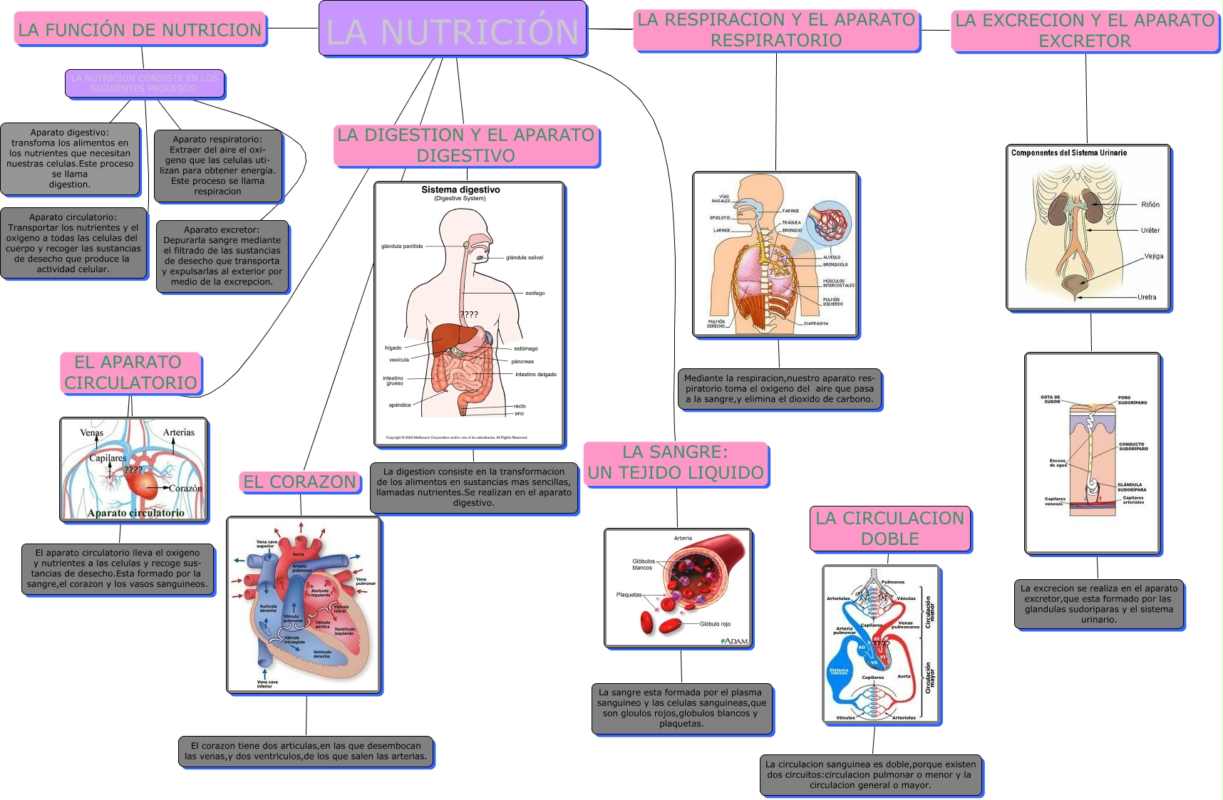Este Cmap, tiene información relacionada con: NUTRICION, LA NUTRICIÓN LA EXCRECION Y EL APARATO EXCRETOR, LA NUTRICION CONSISTE EN LOS SIGUIENTES PROCESOS: ???? Aparato respiratorio: Extraer del aire el oxi- geno que las celulas uti- lizan para obtener energia. Este proceso se llama respiracion, LA NUTRICIÓN LA RESPIRACION Y EL APARATO RESPIRATORIO, LA NUTRICIÓN LA DIGESTION Y EL APARATO DIGESTIVO ????, ???? La excrecion se realiza en el aparato excretor,que esta formado por las glandulas sudoriparas y el sistema urinario., LA NUTRICION CONSISTE EN LOS SIGUIENTES PROCESOS: ???? Aparato digestivo: transfoma los alimentos en los nutrientes que necesitan nuestras celulas.Este proceso se llama digestion., LA NUTRICIÓN EL APARATO CIRCULATORIO ????, LA NUTRICIÓN LA FUNCIÓN DE NUTRICION LA NUTRICION CONSISTE EN LOS SIGUIENTES PROCESOS:, ???? La sangre esta formada por el plasma sanguineo y las celulas sanguineas,que son gloulos rojos,globulos blancos y plaquetas., ???? Mediante la respiracion,nuestro aparato res- piratorio toma el oxigeno del aire que pasa a la sangre,y elimina el dioxido de carbono., LA NUTRICION CONSISTE EN LOS SIGUIENTES PROCESOS: ???? Aparato circulatorio: Transportar los nutrientes y el oxigeno a todas las celulas del cuerpo y recoger las sustancias de desecho que produce la actividad celular., ????, LA NUTRICIÓN LA SANGRE: UN TEJIDO LIQUIDO, LA NUTRICION CONSISTE EN LOS SIGUIENTES PROCESOS: ???? Aparato excretor: Depurarla sangre mediante el filtrado de las sustancias de desecho que transporta y expulsarlas al exterior por medio de la excrepcion., ???? El corazon tiene dos articulas,en las que desembocan las venas,y dos ventriculos,de los que salen las arterias., LA CIRCULACION DOBLE ???? La circulacion sanguinea es doble,porque existen dos circuitos:circulacion pulmonar o menor y la circulacion general o mayor., LA NUTRICIÓN EL APARATO CIRCULATORIO El aparato circulatorio lleva el oxigeno y nutrientes a las celulas y recoge sus- tancias de desecho.Esta formado por la sangre,el corazon y los vasos sanguineos., LA NUTRICIÓN EL CORAZON, ???? ???? La digestion consiste en la transformacion de los alimentos en sustancias mas sencillas, llamadas nutrientes.Se realizan en el aparato digestivo.