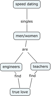 此概念图以 IHMC CmapTools 创建, 内含信息有关于: M10124030 speed dating, engineers find true love, men/women are engineers, speed dating singles men/women, men/women are teachers, teachers find true love