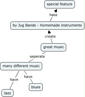 此概念图以 IHMC CmapTools 创建, 内含信息有关于: 未命名 3, great music create by Jug Bands - Homemade instruments, great music seperate many different music, many different music have Jazz, many different music have blues, by Jug Bands - Homemade instruments hass special feature
