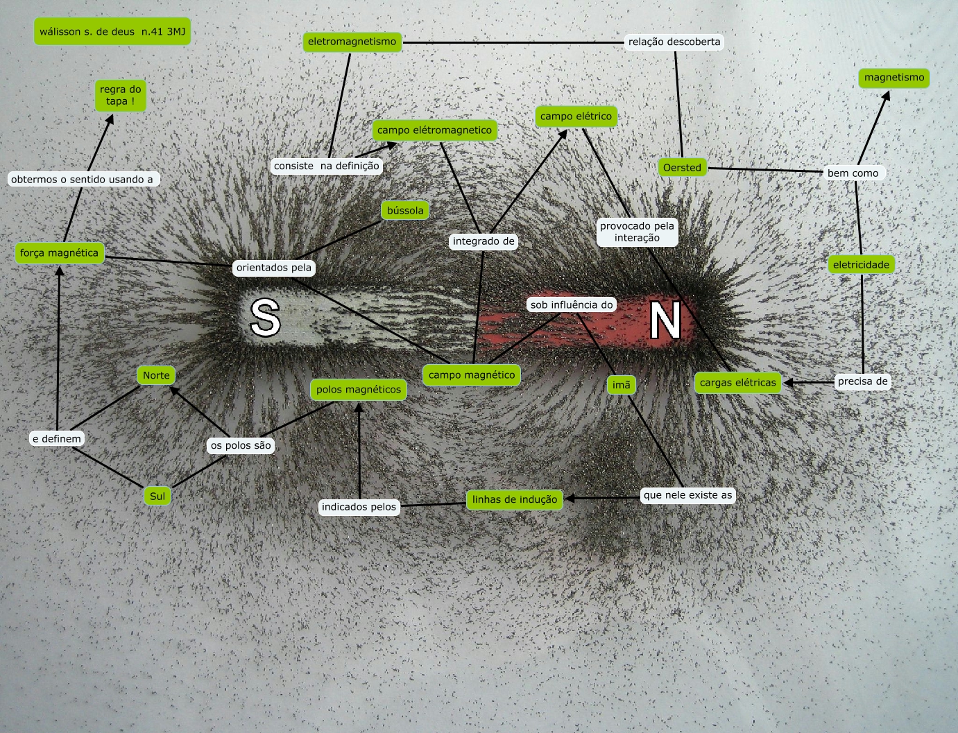 Esse mapa conceitual, produzido no IHMC CmapTools, tem a informação relacionada a: Link para conhecer mais, campo elétromagnetico integrado de campo elétrico, bússola orientados pela campo magnético, Sul e definem força magnética, campo elétromagnetico integrado de campo magnético, Norte e definem força magnética, eletromagnetismo consiste na definição campo elétromagnetico, eletromagnetismo relação descoberta Oersted, imã que nele existe as linhas de indução, eletricidade precisa de cargas elétricas, polos magnéticos os polos são Sul, Oersted bem como eletricidade, campo elétrico provocado pela interação cargas elétricas, força magnética obtermos o sentido usando a regra do tapa !, força magnética orientados pela campo magnético, Oersted bem como magnetismo, campo magnético sob influência do imã, linhas de indução indicados pelos polos magnéticos, polos magnéticos os polos são Norte