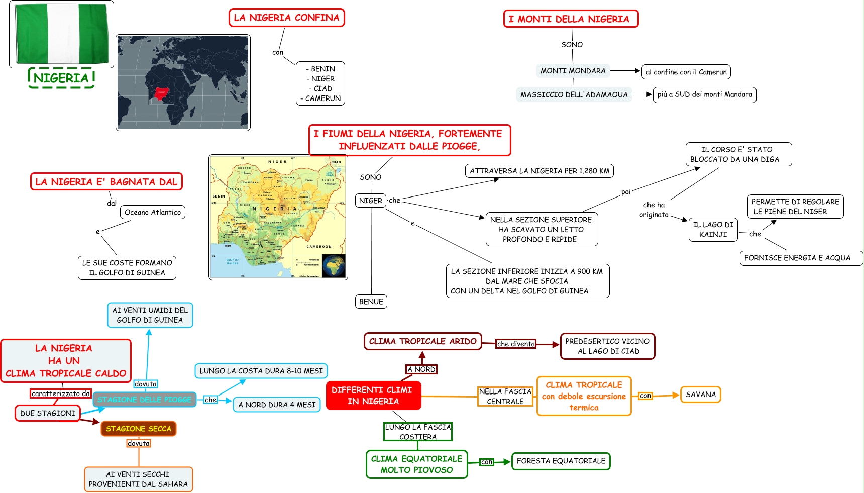 Questa Cmap, creata con IHMC CmapTools, contiene informazioni relative a: nigeria, STAGIONE SECCA dovuta AI VENTI SECCHI PROVENIENTI DAL SAHARA, NELLA SEZIONE SUPERIORE HA SCAVATO UN LETTO PROFONDO E RIPIDE poi IL CORSO E' STATO BLOCCATO DA UNA DIGA, DIFFERENTI CLIMI IN NIGERIA LUNGO LA FASCIA COSTIERA CLIMA EQUATORIALE MOLTO PIOVOSO, DIFFERENTI CLIMI IN NIGERIA NELLA FASCIA CENTRALE CLIMA TROPICALE con debole escursione termica, CLIMA TROPICALE con debole escursione termica con SAVANA, DIFFERENTI CLIMI IN NIGERIA A NORD CLIMA TROPICALE ARIDO, CLIMA TROPICALE ARIDO che diventa PREDESERTICO VICINO AL LAGO DI CIAD, I MONTI DELLA NIGERIA SONO MONTI MONDARA, LA NIGERIA E' BAGNATA DAL dal Oceano Atlantico, CLIMA EQUATORIALE MOLTO PIOVOSO con FORESTA EQUATORIALE, LA NIGERIA HA UN CLIMA TROPICALE CALDO caratterizzato da DUE STAGIONI, MONTI MONDARA che al confine con il Camerun, MASSICCIO DELL'ADAMAOUA che più a SUD dei monti Mandara, IL LAGO DI KAINJI che FORNISCE ENERGIA E ACQUA, IL LAGO DI KAINJI che PERMETTE DI REGOLARE LE PIENE DEL NIGER, STAGIONE DELLE PIOGGE che A NORD DURA 4 MESI, DUE STAGIONI ???? STAGIONE DELLE PIOGGE, STAGIONE DELLE PIOGGE dovuta AI VENTI UMIDI DEL GOLFO DI GUINEA, NIGER che ATTRAVERSA LA NIGERIA PER 1.280 KM, I FIUMI DELLA NIGERIA, FORTEMENTE INFLUENZATI DALLE PIOGGE, SONO BENUE