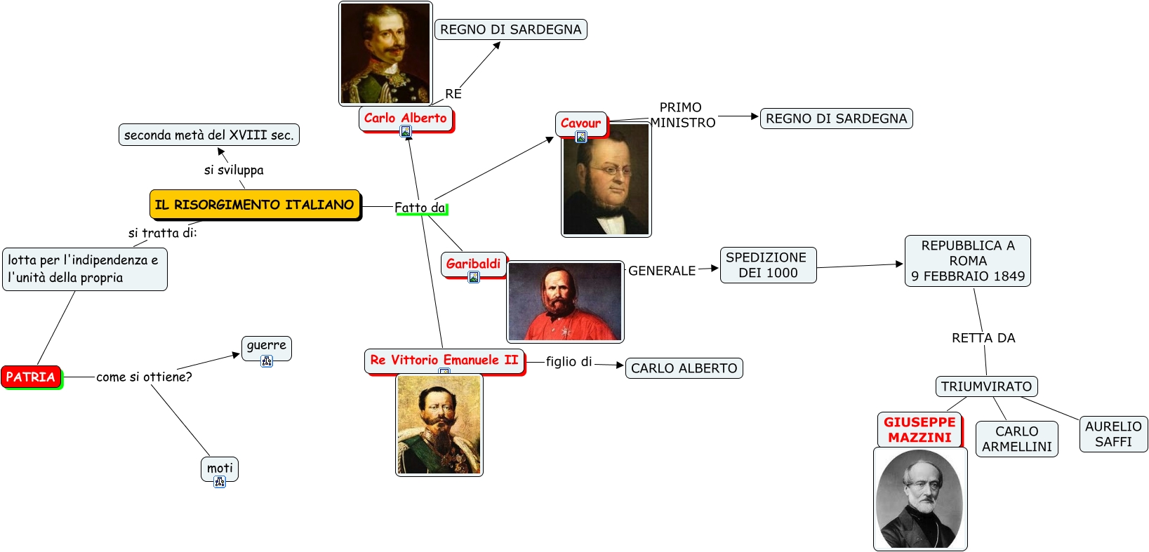 Questa Cmap, creata con IHMC CmapTools, contiene informazioni relative a: PERCHE' RISORGIMENTO, Garibaldi GENERALE SPEDIZIONE DEI 1000, IL RISORGIMENTO ITALIANO Fatto da Carlo Alberto, TRIUMVIRATO ???? AURELIO SAFFI, Carlo Alberto RE REGNO DI SARDEGNA, IL RISORGIMENTO ITALIANO si sviluppa seconda metà del XVIII sec., REPUBBLICA A ROMA 9 FEBBRAIO 1849 RETTA DA TRIUMVIRATO, SPEDIZIONE DEI 1000 ???? REPUBBLICA A ROMA 9 FEBBRAIO 1849, IL RISORGIMENTO ITALIANO Fatto da Garibaldi, IL RISORGIMENTO ITALIANO Fatto da Re Vittorio Emanuele II, IL RISORGIMENTO ITALIANO si tratta di: lotta per l'indipendenza e l'unità della propria, TRIUMVIRATO ???? CARLO ARMELLINI, Cavour PRIMO MINISTRO REGNO DI SARDEGNA, lotta per l'indipendenza e l'unità della propria ???? PATRIA, IL RISORGIMENTO ITALIANO Fatto da Cavour, PATRIA come si ottiene? guerre, TRIUMVIRATO ???? GIUSEPPE MAZZINI, PATRIA come si ottiene? moti, Re Vittorio Emanuele II figlio di CARLO ALBERTO