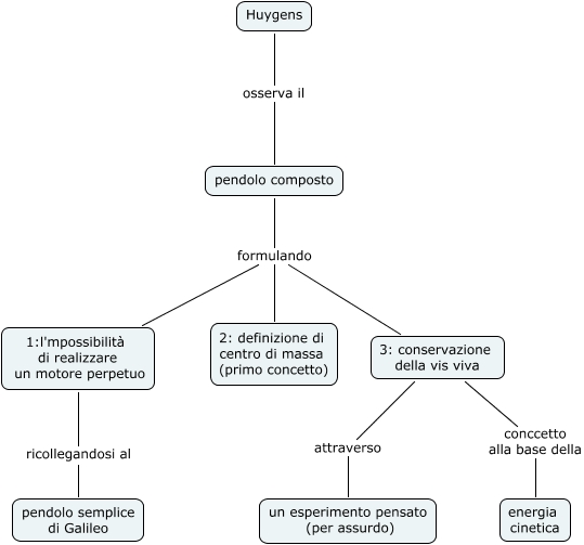 Questa Cmap, creata con IHMC CmapTools, contiene informazioni relative a: huygens, Huygens osserva il pendolo composto, pendolo composto formulando 1:l'mpossibilità di realizzare un motore perpetuo, 3: conservazione della vis viva conccetto alla base della energia cinetica, 1:l'mpossibilità di realizzare un motore perpetuo ricollegandosi al pendolo semplice di Galileo, pendolo composto formulando 2: definizione di centro di massa (primo concetto), pendolo composto formulando 3: conservazione della vis viva, 3: conservazione della vis viva attraverso un esperimento pensato (per assurdo)