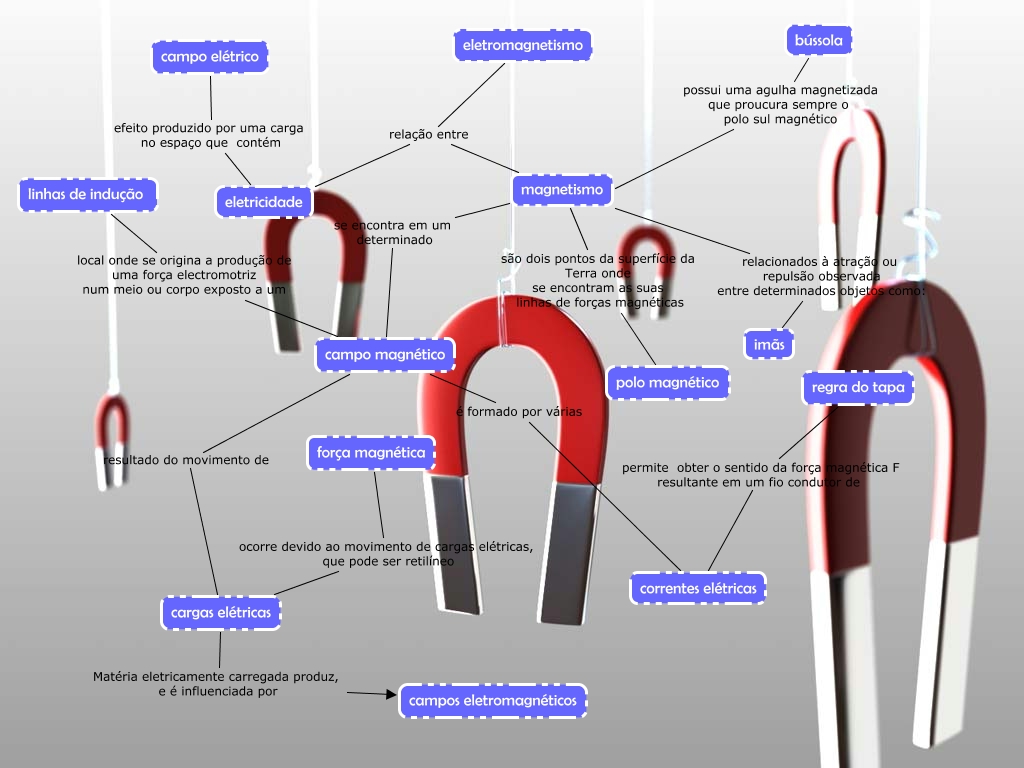 Esse mapa conceitual, produzido no IHMC CmapTools, tem a informação relacionada a: 24 - Karen Alice Costa, campo elétrico efeito produzido por uma carga no espaço que contém eletricidade, regra do tapa permite obter o sentido da força magnética F resultante em um fio condutor de correntes elétricas, bússola possui uma agulha magnetizada que proucura sempre o polo sul magnético magnetismo, linhas de indução local onde se origina a produção de uma força electromotriz num meio ou corpo exposto a um campo magnético, eletromagnetismo relação entre eletricidade, eletromagnetismo relação entre magnetismo, magnetismo se encontra em um determinado campo magnético, campo magnético resultado do movimento de cargas elétricas, campo magnético é formado por várias correntes elétricas, cargas elétricas Matéria eletricamente carregada produz, e é influenciada por campos eletromagnéticos, magnetismo relacionados à atração ou repulsão observada entre determinados objetos como: imãs, magnetismo são dois pontos da superfície da Terra onde se encontram as suas linhas de forças magnéticas polo magnético, força magnética ocorre devido ao movimento de cargas elétricas, que pode ser retilíneo cargas elétricas