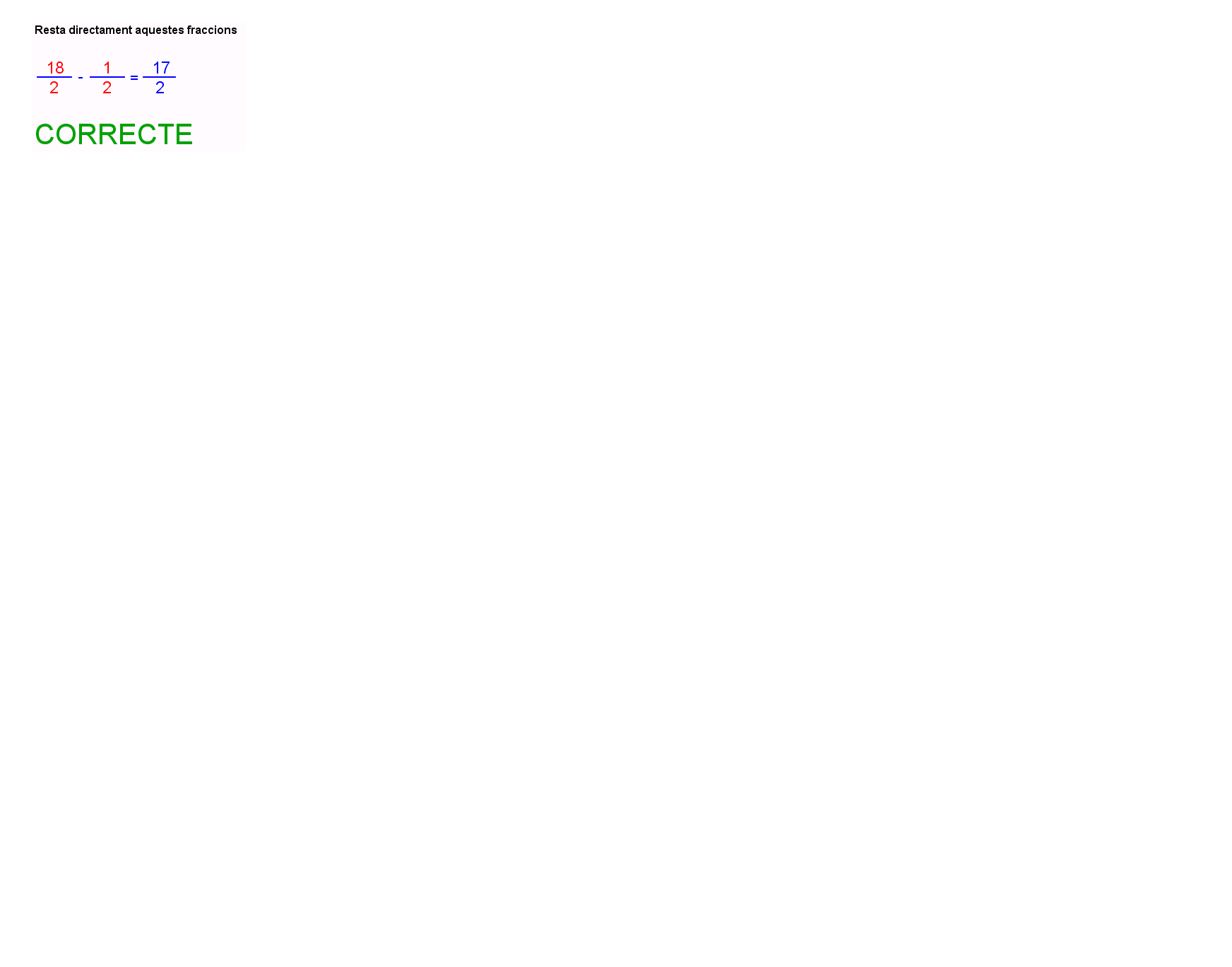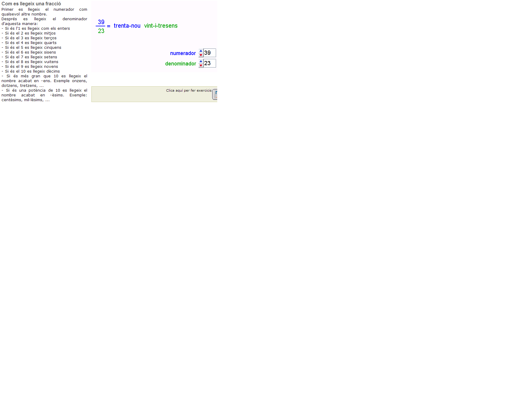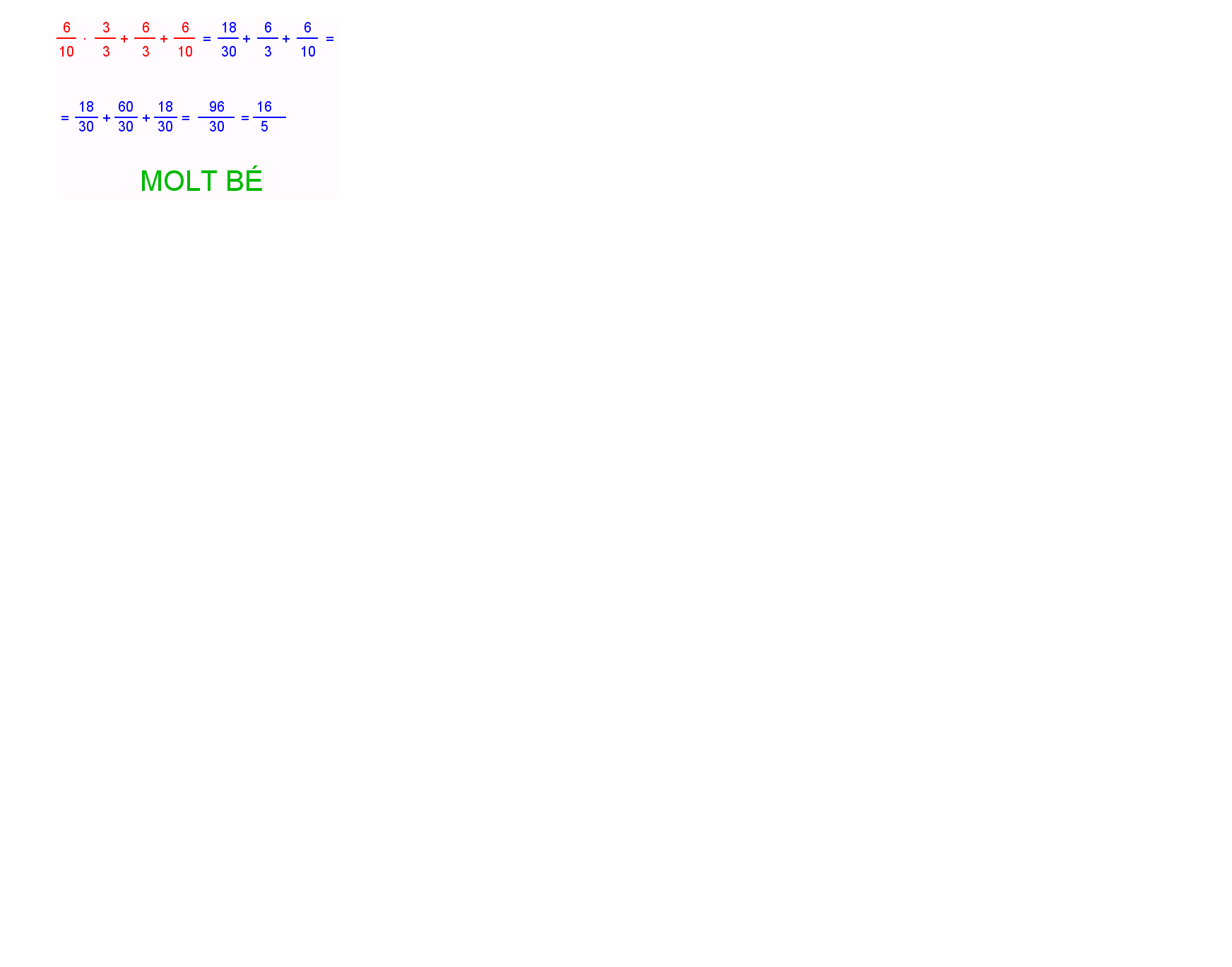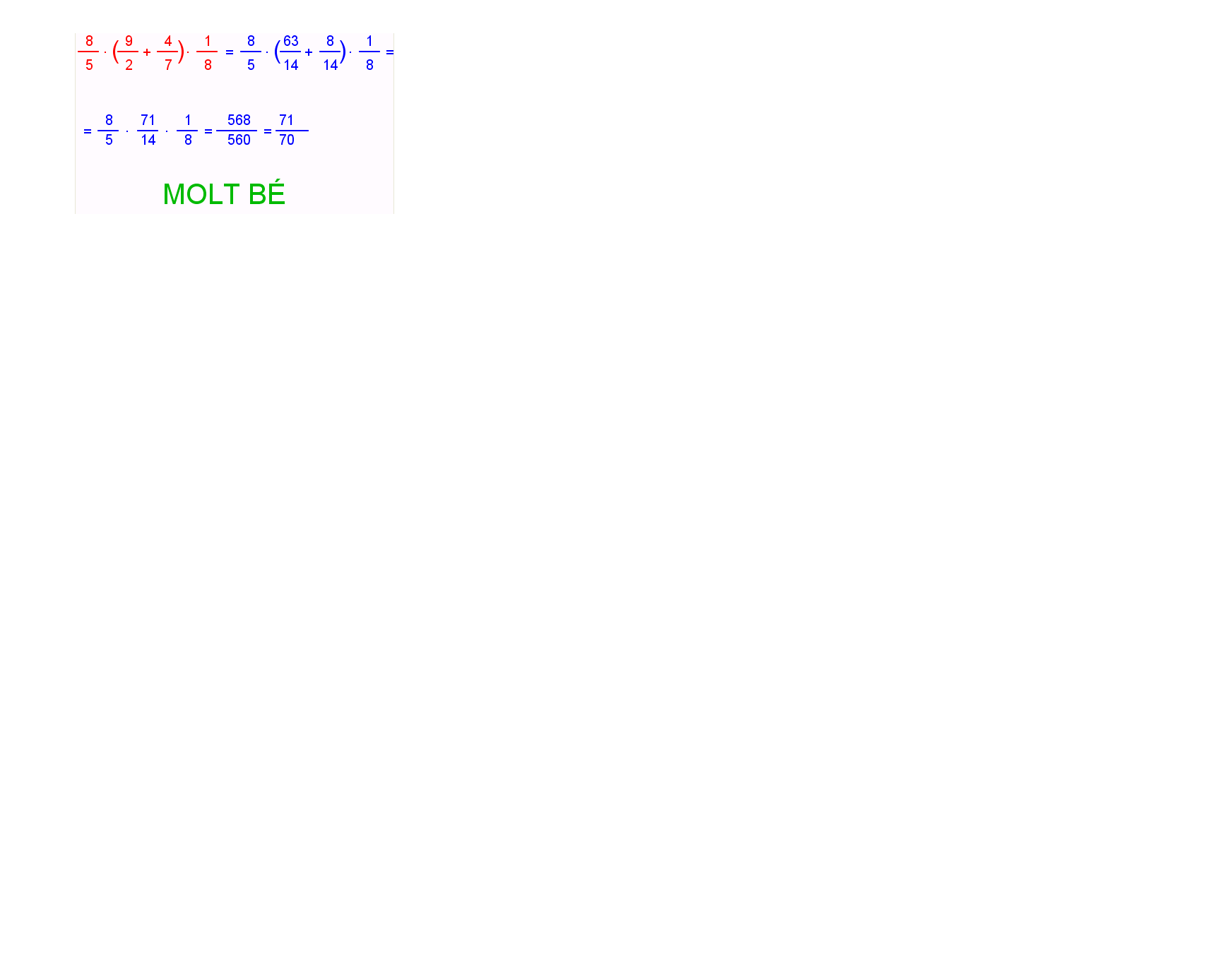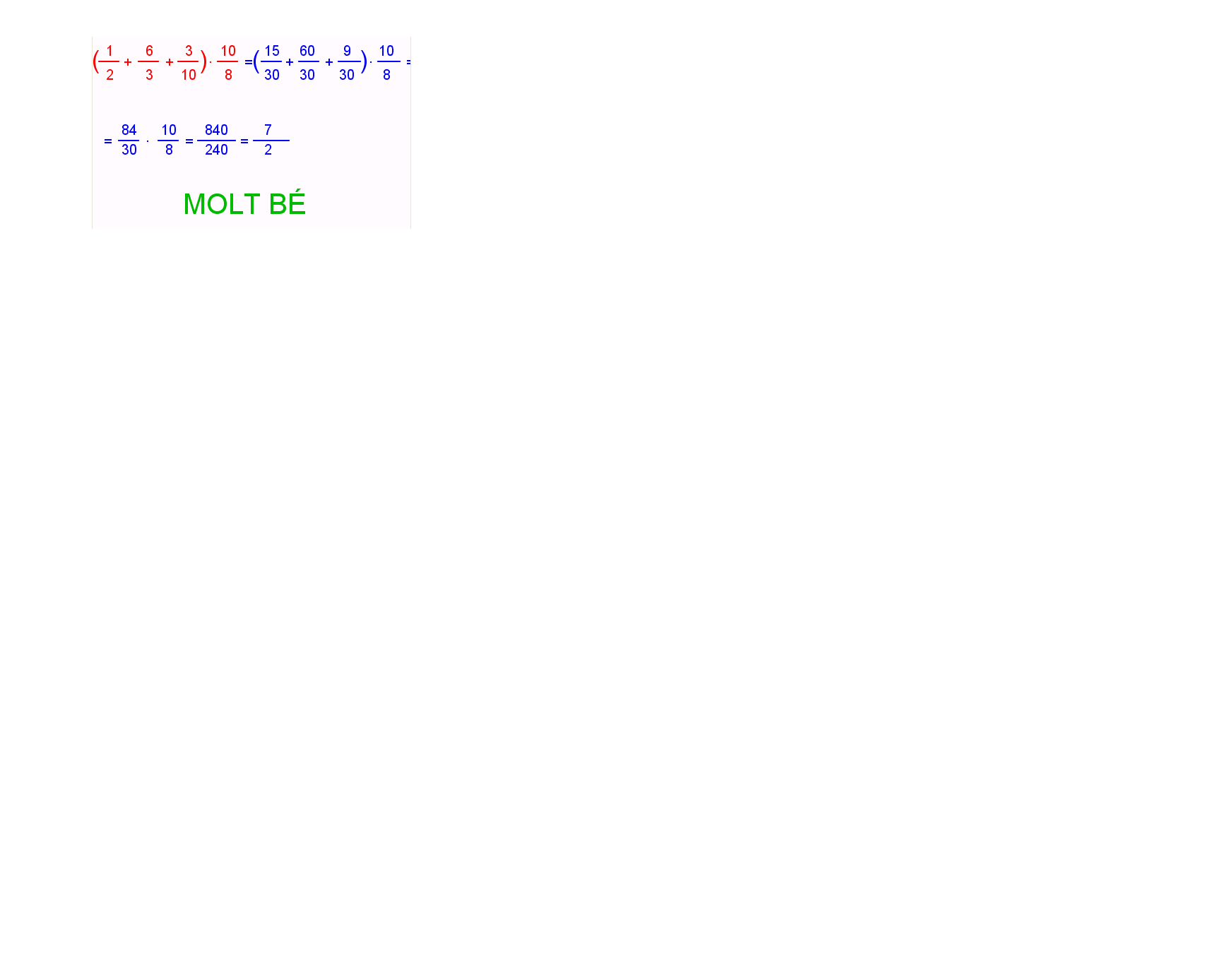 5.1.1 Les fraccions a la nostra vida quotidiana.png 5.1.2 Elements d'una fracció.png 5.1.3 Com es llegeix una fracció.png 5.1.4 Valor d'una fracció.png 5.1.5 De fracció a decimal.png 5.2.1a) Fraccions equivalents.png 5.2.1b) Fraccions equivalents.png 5.2.2 Productes creuats.png 5.2.3a) Simplificar una fracció.png 5.2.3b) Simplificar una fracció.png 5.3.1 Passar fracions a comú denominador.png 5.3.2a) Suma de fraccions.png 5.3.2b) Suma de fraccions.png 5.3.3a) Suma i resta de fraccions.png 5.3.3b) Suma i resta de fraccions.png 5.3.4 Multiplicació de fraccions.png 5.3.5 Fracció inversa d'una fracció.png 5.3.6 Divisió de fraccions.png 5.3.7(1) Operacions combinades.png 5.3.7(10) Operacions combinades.png 5.3.7(2) Operacions combinades.png 5.3.7(3) Operacions combinades.png 5.3.7(4) Operacions combinades.png 5.3.7(5) Operacions combinades.png 5.3.7(6) Operacions combinades.png 5.3.7(7) Operacions combinades.png 5.3.7(8) Operacions combinades.png 5.3.7(9) Operacions combinades.png 5.3.7 Operacions combinades.png Com es llegeix una fracció.png Elements d'una fracció.png Les fraccions.png Tema 5. Exercicis.cmap tema5 autovaluació.png tema5 enviar al tutor.png Tema 5 fraccions.cmap