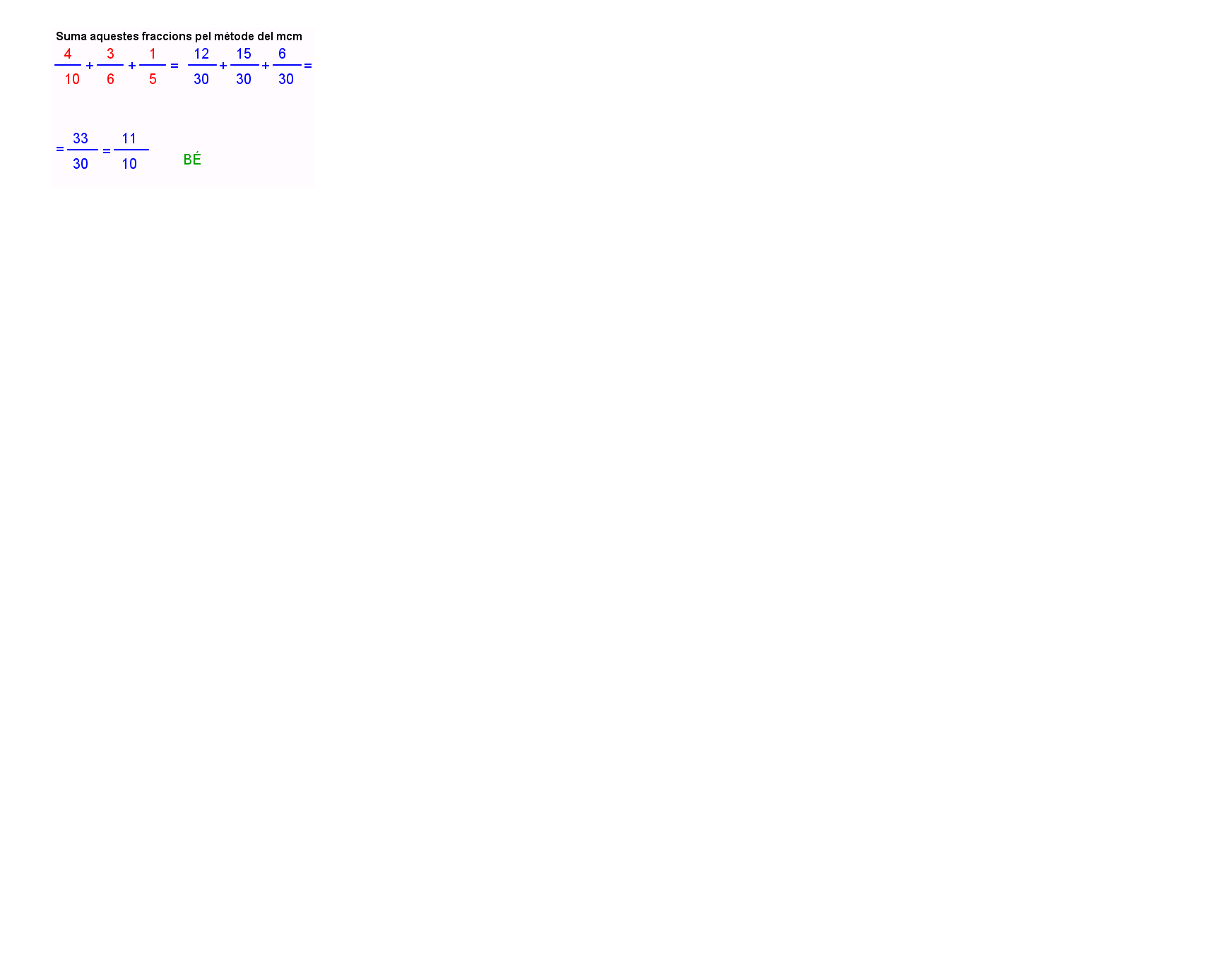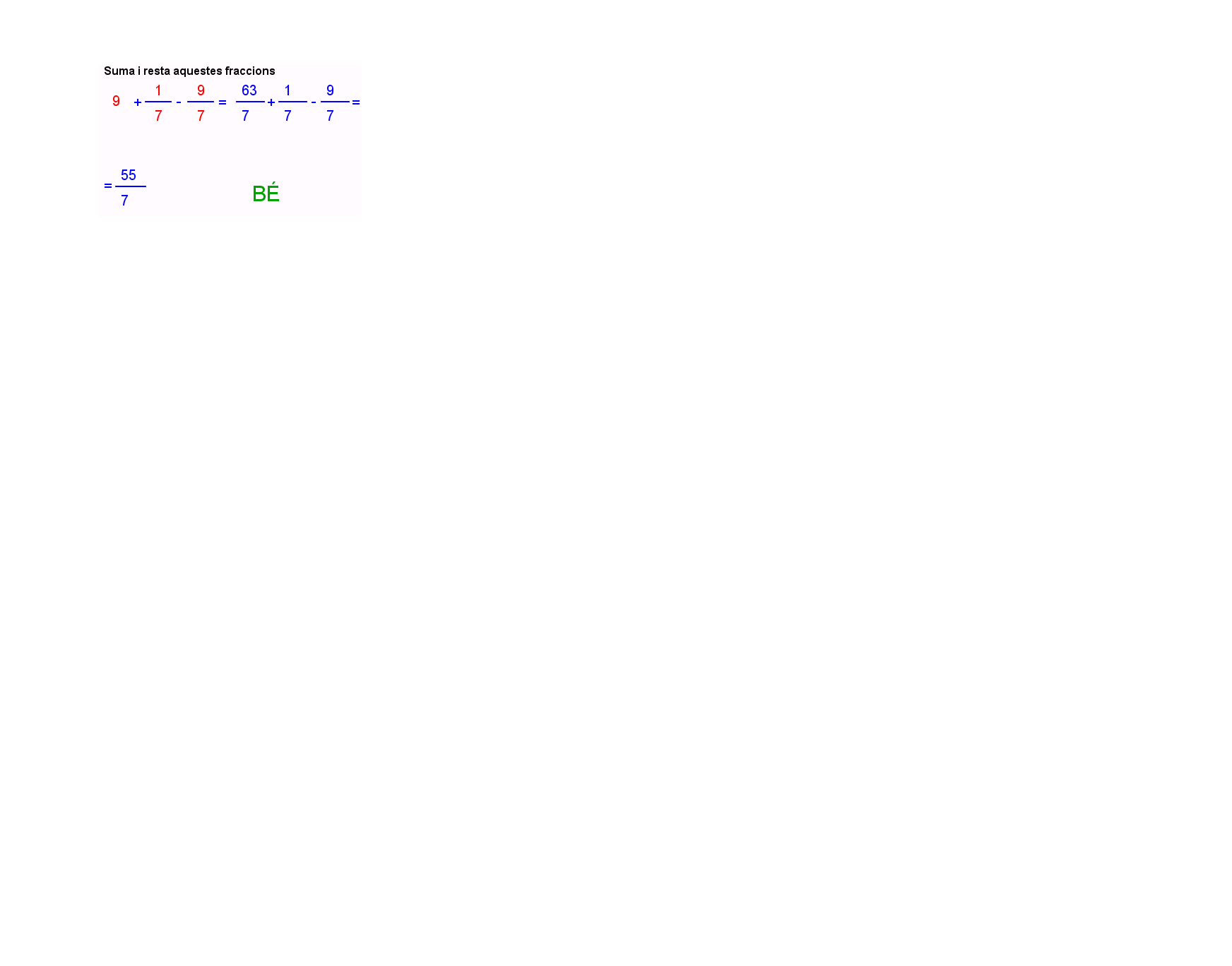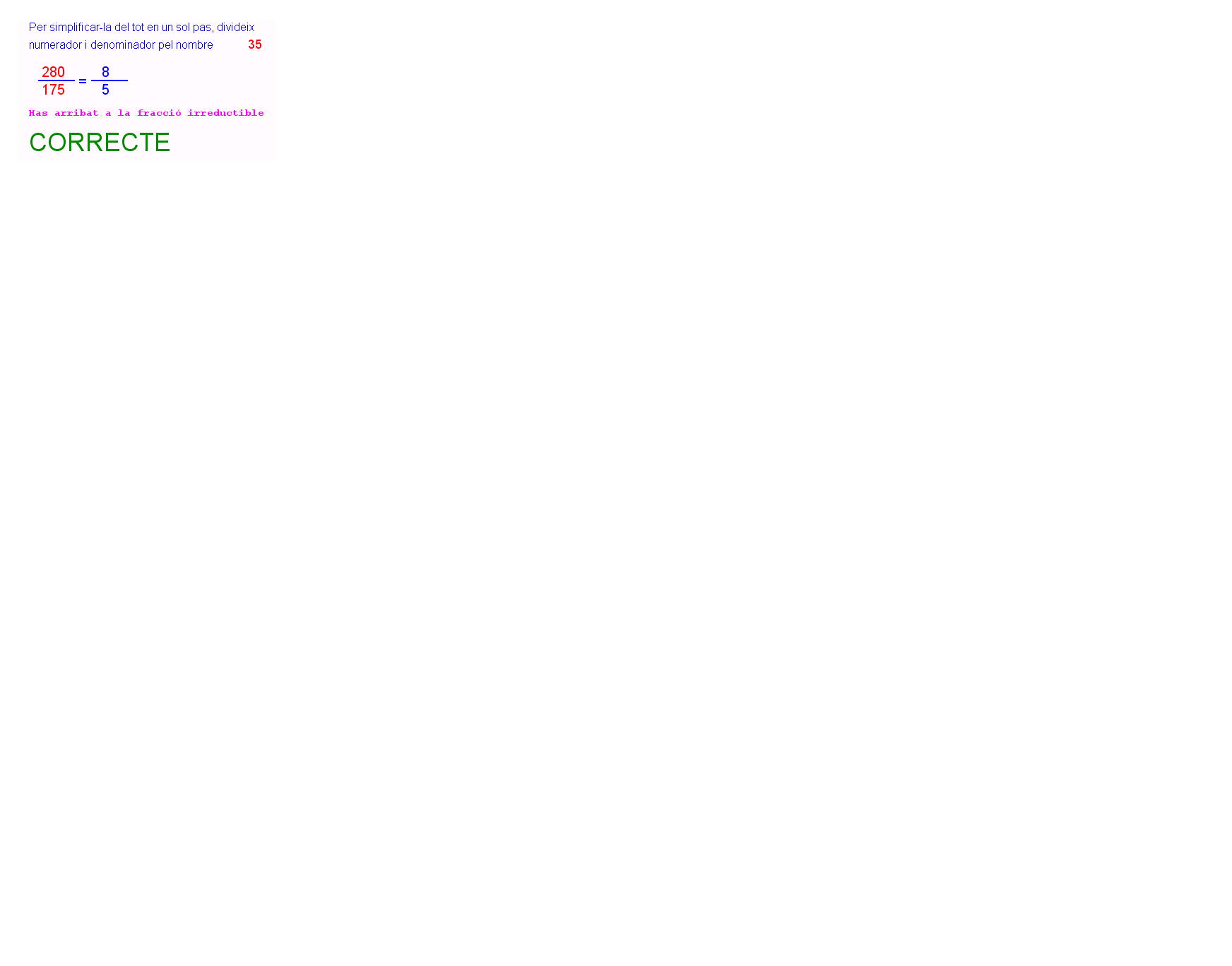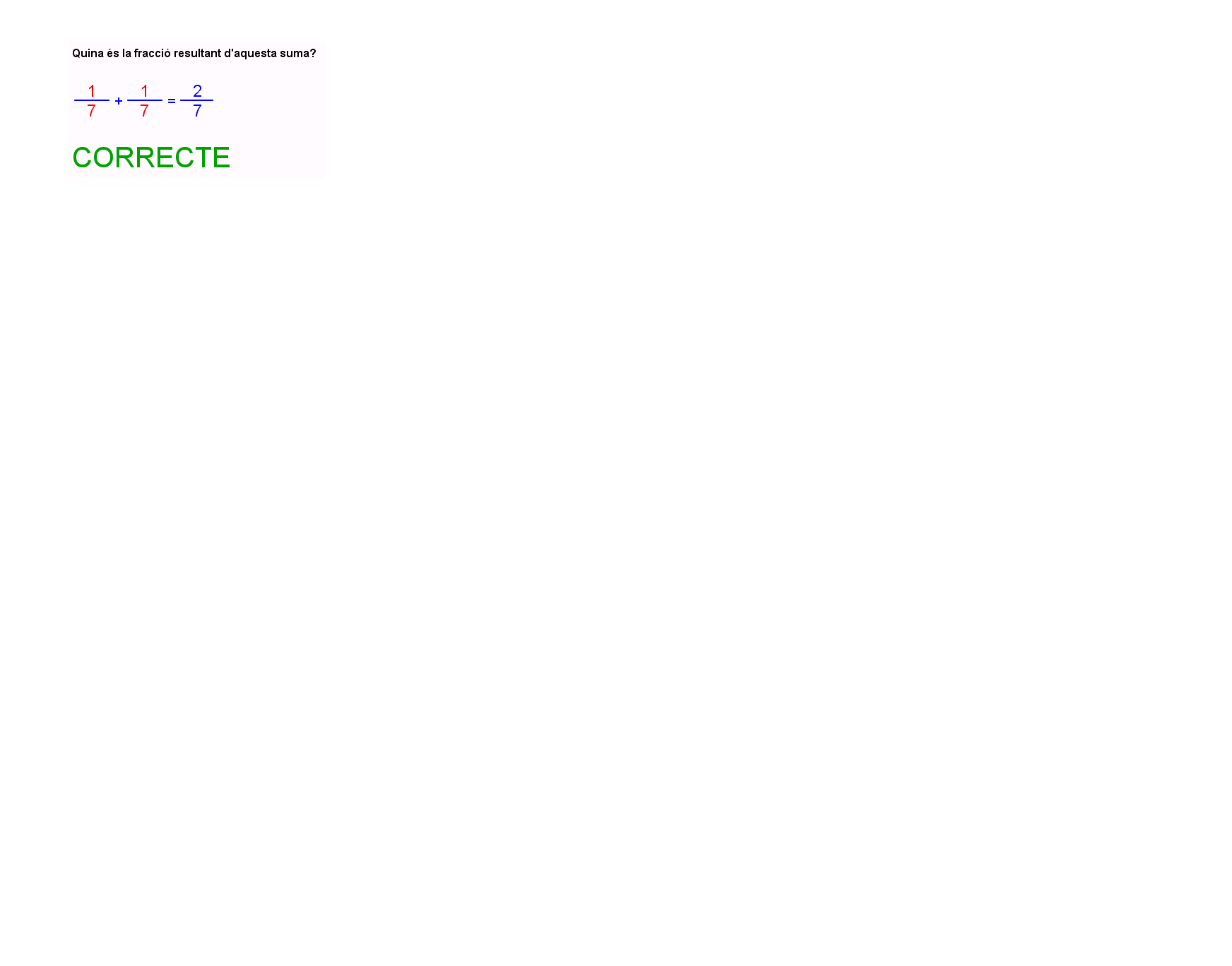 5.1.1 Les fraccions a la nostra vida quotidiana.png 5.1.2 Elements d'una fracció.png 5.1.3 Com es llegeix una fracció.png 5.1.4 Valor d'una fracció.png 5.1.5 De fracció a decimal.png 5.2.1a) Fraccions equivalents.png 5.2.1b) Fraccions equivalents.png 5.2.2 Productes creuats.png 5.2.3a) Simplificar una fracció.png 5.2.3b) Simplificar una fracció.png 5.3.1 Passar fracions a comú denominador.png 5.3.2a) Suma de fraccions.png 5.3.2b) Suma de fraccions.png 5.3.3a) Suma i resta de fraccions.png 5.3.3b) Suma i resta de fraccions.png 5.3.4 Multiplicació de fraccions.png 5.3.5 Fracció inversa d'una fracció.png 5.3.6 Divisió de fraccions.png 5.3.7(1) Operacions combinades.png 5.3.7(10) Operacions combinades.png 5.3.7(2) Operacions combinades.png 5.3.7(3) Operacions combinades.png 5.3.7(4) Operacions combinades.png 5.3.7(5) Operacions combinades.png 5.3.7(6) Operacions combinades.png 5.3.7(7) Operacions combinades.png 5.3.7(8) Operacions combinades.png 5.3.7(9) Operacions combinades.png 5.3.7 Operacions combinades.png Com es llegeix una fracció.png Elements d'una fracció.png Les fraccions.png Tema 5. Exercicis.cmap tema5 autovaluació.png tema5 enviar al tutor.png Tema 5 fraccions.cmap