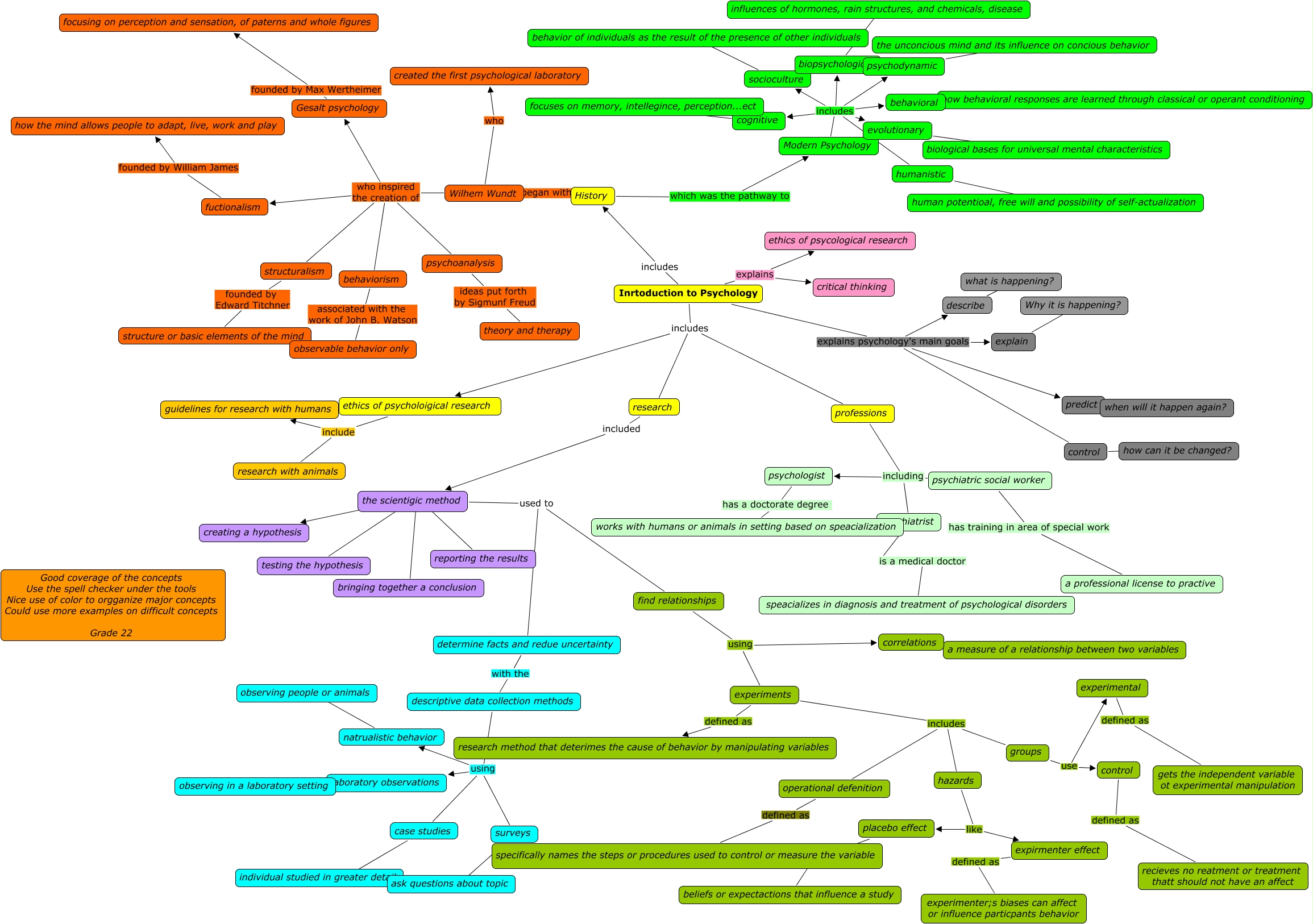 This Concept Map, created with IHMC CmapTools, has information related to: Bishop Ch 1 22, experiments includes groups, Gesalt psychology founded by Max Wertheimer focusing on perception and sensation, of paterns and whole figures, Wilhem Wundt who inspired the creation of structuralism, ethics of psycholoigical research include guidelines for research with humans, Inrtoduction to Psychology includes ethics of psycholoigical research, Inrtoduction to Psychology explains psychology's main goals control, Modern Psychology includes socioculture, Modern Psychology includes behavioral, Inrtoduction to Psychology explains psychology's main goals describe, correlations ???? a measure of a relationship between two variables, experiments includes hazards, control ???? how can it be changed?, Wilhem Wundt who inspired the creation of fuctionalism, expirmenter effect defined as experimenter;s biases can affect or influence particpants behavior, Inrtoduction to Psychology includes professions, the scientigic method ???? reporting the results, the scientigic method ???? testing the hypothesis, humanistic ???? human potentioal, free will and possibility of self-actualization, experiments defined as research method that deterimes the cause of behavior by manipulating variables, explain ???? Why it is happening?