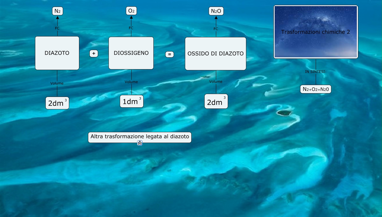 Questa Cmap, creata con IHMC CmapTools, contiene informazioni relative a: Reazione_N2_O2__N2O, DIOSSIGENO Volume <math xmlns="http://www.w3.org/1998/Math/MathML"> <mrow> <mtext> 1dm </mtext> <mmultiscripts> <mtext> </mtext> <none/> <mtext> 3 </mtext> </mmultiscripts> </mrow> </math>, DIAZOTO FC N2, OSSIDO DI DIAZOTO Volume <math xmlns="http://www.w3.org/1998/Math/MathML"> <mrow> <mtext> 2dm </mtext> <mmultiscripts> <mtext> </mtext> <none/> <mtext> 3 </mtext> </mmultiscripts> </mrow> </math>, OSSIDO DI DIAZOTO FC N2O, DIOSSIGENO FC O2, DIAZOTO Volume <math xmlns="http://www.w3.org/1998/Math/MathML"> <mrow> <mtext> 2dm </mtext> <mmultiscripts> <mtext> </mtext> <none/> <mtext> 3 </mtext> </mmultiscripts> </mrow> </math>, Trasformazioni chimiche 2 IN SINTESI: N2+O2=N20