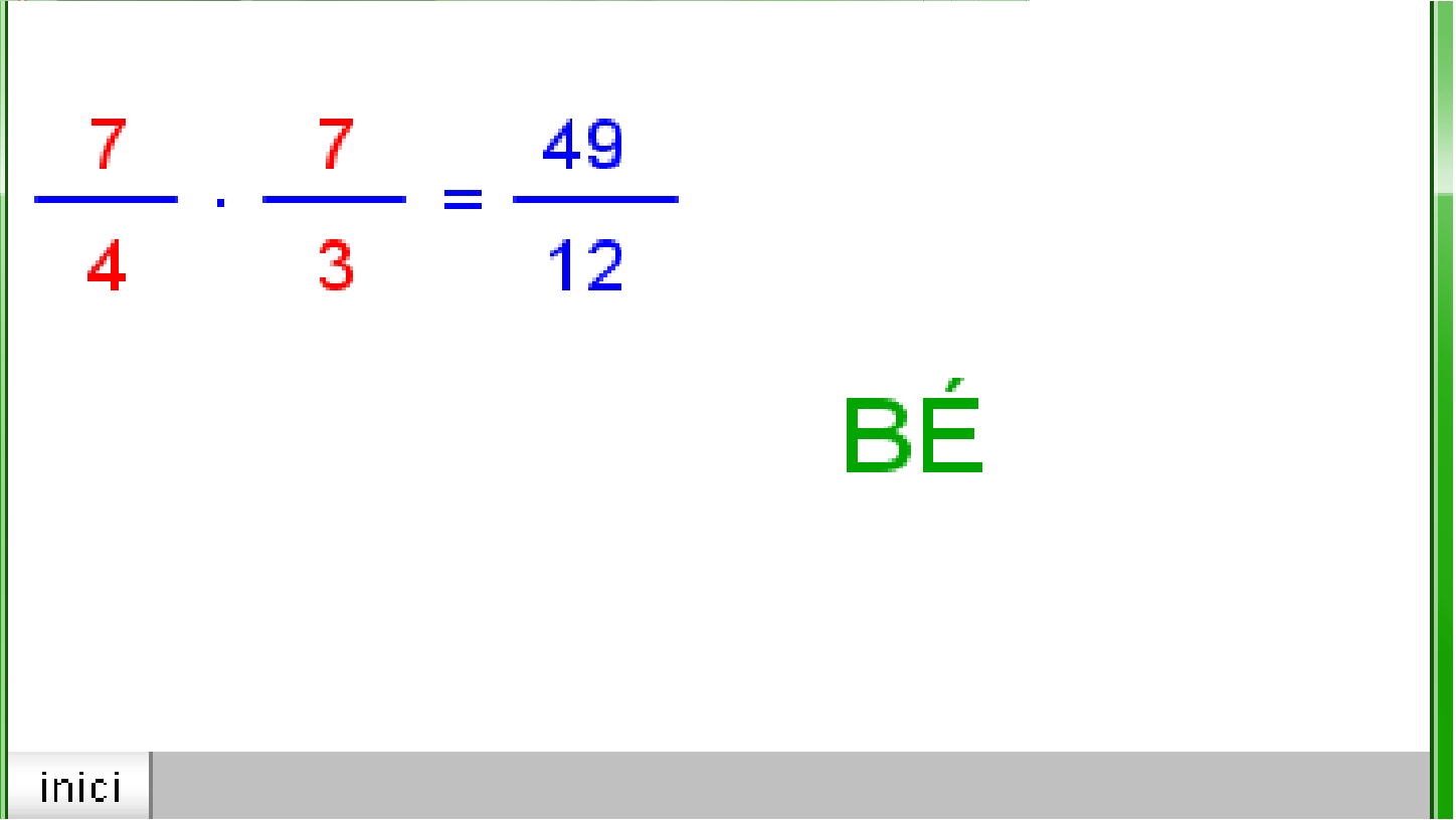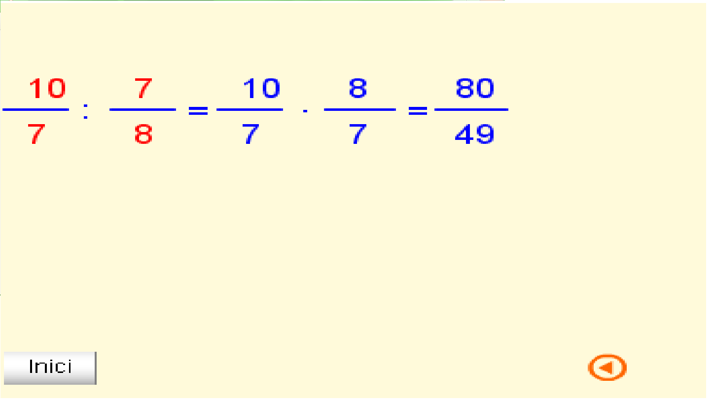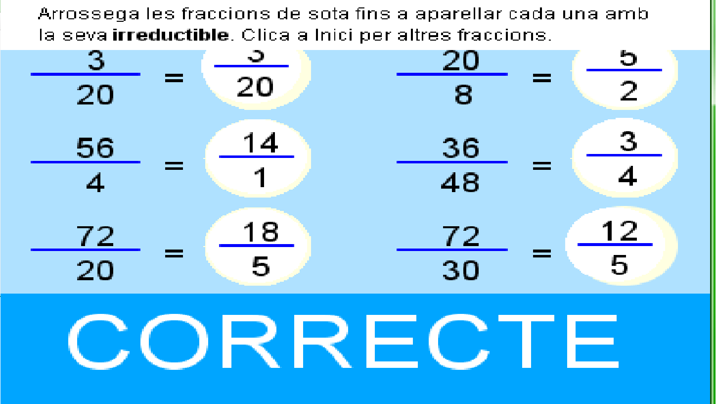 5.15 De fracció a decimal.docx T.5.1.4 valor d'una fracció.png T5.1.1A Les fraccions en la nostra vida quotidiana.png T5.1.1B Les fraccions en la nostra vida quotidiana.png T5.1.2A Definició i elements d'una fracció.png T5.1.2B Definició i elements d'una fracció.png T5.1.3A Com es llegeix una fracció.png T5.1.3B Com es llegeix una fracció.png T5.1.4B Concepte de fracció.png T5.2.1 B fraccions equivalents.png T5.2.1 fraccions equivalents.png T5.2.2 B Productes creuats.png T5.2.2 Productes creuats.png T5.2.3A Simplificar una fracció.png T5.2.3B Simplificar una fracció.png T5.3.1 Passar fraccions a comú denominador.png T5.3.2A suma de fraccions.png T5.3.2B suma de fraccions.png T5.3.3A Suma i resta de fraccions.png T5.3.3B Suma i resta de fraccions.png T5.3.4A Multiplicació de fraccions.png T5.3.4B Multiplicació de fraccions.png T5.3.5 Fracció inversa d'una fracció.png T5.3.6 Divisió de fraccions.png T5.3.7 Operacions combinades.png