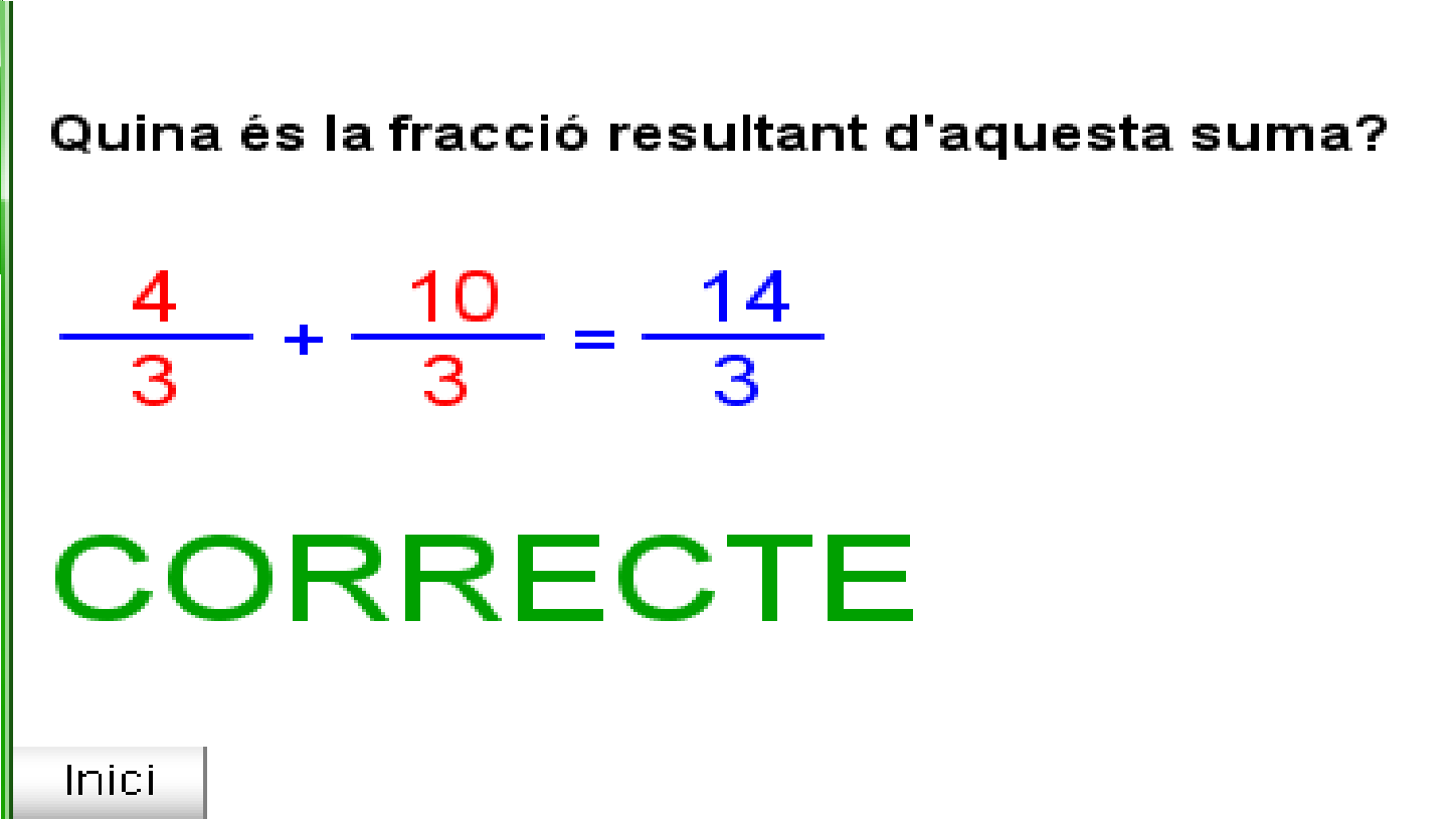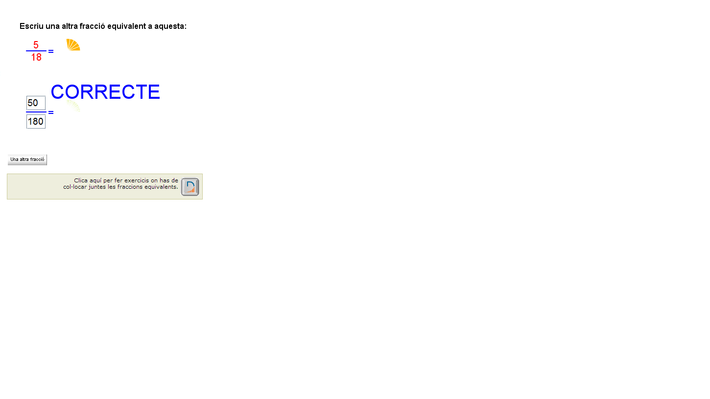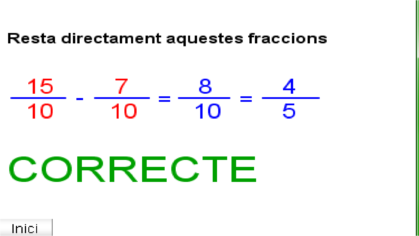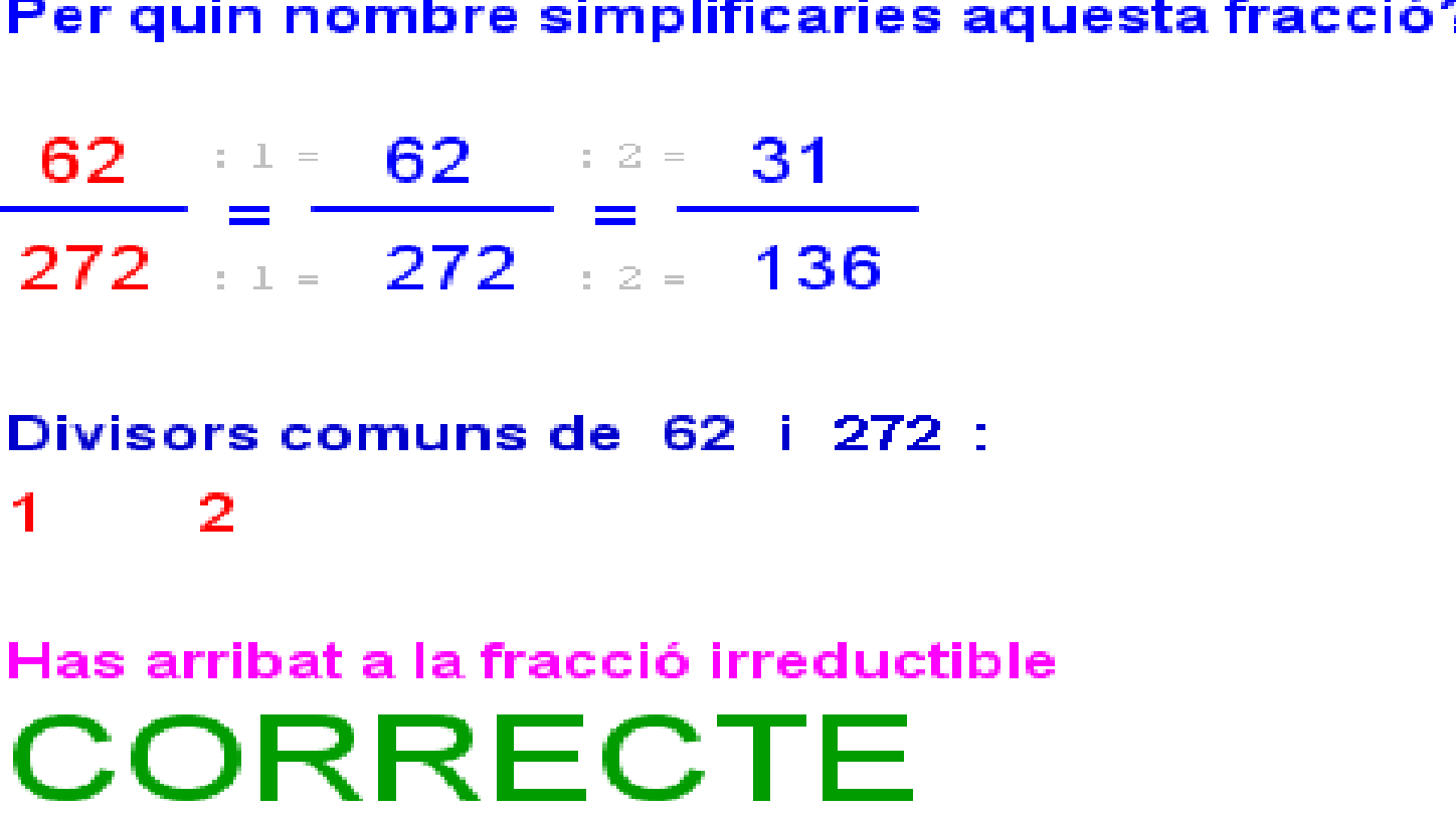 5.15 De fracció a decimal.docx T.5.1.4 valor d'una fracció.png T5.1.1A Les fraccions en la nostra vida quotidiana.png T5.1.1B Les fraccions en la nostra vida quotidiana.png T5.1.2A Definició i elements d'una fracció.png T5.1.2B Definició i elements d'una fracció.png T5.1.3A Com es llegeix una fracció.png T5.1.3B Com es llegeix una fracció.png T5.1.4B Concepte de fracció.png T5.2.1 B fraccions equivalents.png T5.2.1 fraccions equivalents.png T5.2.2 B Productes creuats.png T5.2.2 Productes creuats.png T5.2.3A Simplificar una fracció.png T5.2.3B Simplificar una fracció.png T5.3.1 Passar fraccions a comú denominador.png T5.3.2A suma de fraccions.png T5.3.2B suma de fraccions.png T5.3.3A Suma i resta de fraccions.png T5.3.3B Suma i resta de fraccions.png T5.3.4A Multiplicació de fraccions.png T5.3.4B Multiplicació de fraccions.png T5.3.5 Fracció inversa d'una fracció.png T5.3.6 Divisió de fraccions.png T5.3.7 Operacions combinades.png