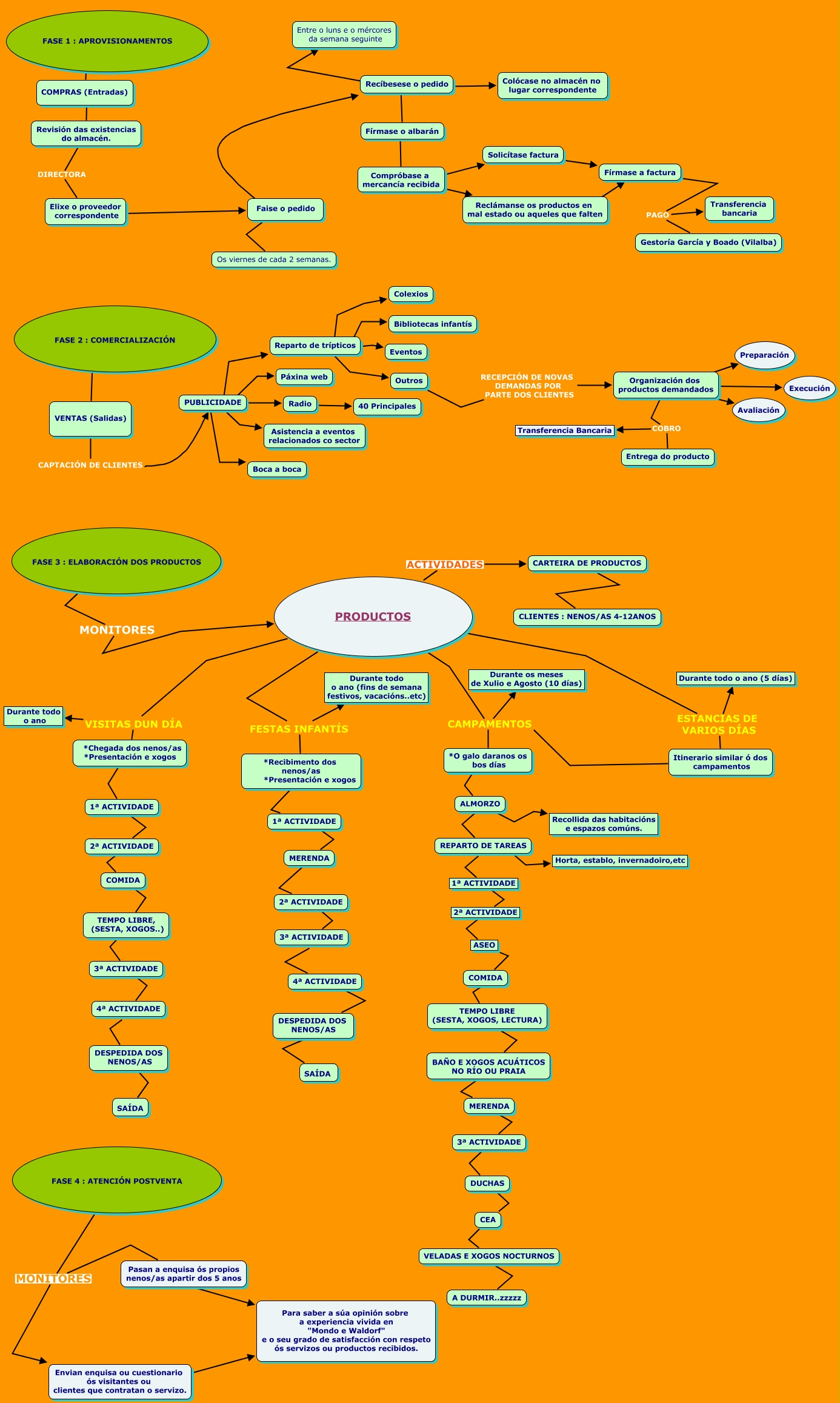Este Cmap, tiene información relacionada con: PROCESO PRODUCTIVO mondo e waldorffff definitivo, Reparto de trípticos ???? Colexios, PRODUCTOS FESTAS INFANTÍS Durante todo o ano (fins de semana festivos, vacacións..etc), 4ª ACTIVIDADE ???? DESPEDIDA DOS NENOS/AS, Reclámanse os productos en mal estado ou aqueles que falten ???? Fírmase a factura, PRODUCTOS CAMPAMENTOS *O galo daranos os bos días, FASE 4 : ATENCIÓN POSTVENTA MONITORES Pasan a enquisa ós propios nenos/as apartir dos 5 anos, FASE 1 : APROVISIONAMENTOS ???? COMPRAS (Entradas), MERENDA ???? 2ª ACTIVIDADE, VENTAS (Salidas) CAPTACIÓN DE CLIENTES PUBLICIDADE, Reparto de trípticos ???? Eventos, PRODUCTOS ESTANCIAS DE VARIOS DÍAS Itinerario similar ó dos campamentos, PRODUCTOS ESTANCIAS DE VARIOS DÍAS Durante todo o ano (5 días), Organización dos productos demandados ???? Avaliación, REPARTO DE TAREAS ???? Horta, establo, invernadoiro,etc, COMPRAS (Entradas) ???? Revisión das existencias do almacén., *Recibimento dos nenos/as *Presentación e xogos ???? 1ª ACTIVIDADE, REPARTO DE TAREAS ???? 1ª ACTIVIDADE, Recíbesese o pedido ???? Entre o luns e o mércores da semana seguinte, FASE 2 : COMERCIALIZACIÓN ???? VENTAS (Salidas), Fírmase a factura PAGO Transferencia bancaria