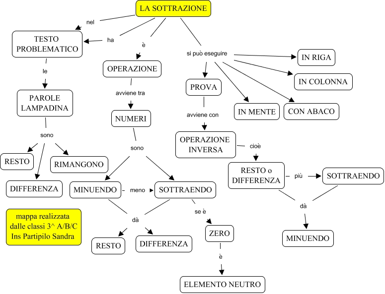 Questa Cmap, creata con IHMC CmapTools, contiene informazioni relative a: SOTTRAZIONE_SAND, MINUENDO dà RESTO, SOTTRAENDO dà MINUENDO, SOTTRAENDO se è ZERO, MINUENDO meno SOTTRAENDO, NUMERI sono MINUENDO, NUMERI sono SOTTRAENDO, LA SOTTRAZIONE si può eseguire IN COLONNA, OPERAZIONE avviene tra NUMERI, LA SOTTRAZIONE si può eseguire IN MENTE, PAROLE LAMPADINA sono RESTO, LA SOTTRAZIONE nel TESTO PROBLEMATICO, ZERO è ELEMENTO NEUTRO, LA SOTTRAZIONE si può eseguire IN RIGA, LA SOTTRAZIONE si può eseguire PROVA, LA SOTTRAZIONE si può eseguire CON ABACO, SOTTRAENDO dà RESTO, PROVA avviene con OPERAZIONE INVERSA, SOTTRAENDO dà DIFFERENZA, RESTO o DIFFERENZA più SOTTRAENDO, RESTO o DIFFERENZA dà MINUENDO