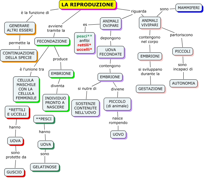 Questa Cmap, creata con IHMC CmapTools, contiene informazioni relative a: el tiempo de implementación, LA RIPRODUZIONE riguarda ANIMALI OVIPARI, LA RIPRODUZIONE riguarda ANIMALI VIVIPARI, FECONDAZIONE è l'unione tra CELLULA MASCHILE CON LA CELLULA FEMMINILE, *RETTILI E UCCELLI hanno UOVA, UOVA FECONDATE contengono EMBRIONE, EMBRIONE diventa INDIVIDUO PRONTO A NASCERE, PICCOLO (di animale) nasce rompendo UOVO, FECONDAZIONE produce EMBRIONE, ANIMALI OVIPARI depongono UOVA FECONDATE, ANIMALI VIVIPARI contengono nel corpo EMBRIONI, GENERARE ALTRI ESSERI permette la CONTINUAZIONE DELLA SPECIE, ANIMALI OVIPARI es pesci** anfibi rettili* uccelli*, ANIMALI VIVIPARI partoriscono PICCOLI, UOVA sono GELATINOSE, LA RIPRODUZIONE avviene tramite la FECONDAZIONE, EMBRIONE si nutre di SOSTENZE CONTENUTE NELL'UOVO, MAMMIFERI sono ANIMALI VIVIPARI, UOVA sono protette da GUSCIO, LA RIPRODUZIONE è la funzione di GENERARE ALTRI ESSERI, EMBRIONI si sviluppano durante la GESTAZIONE