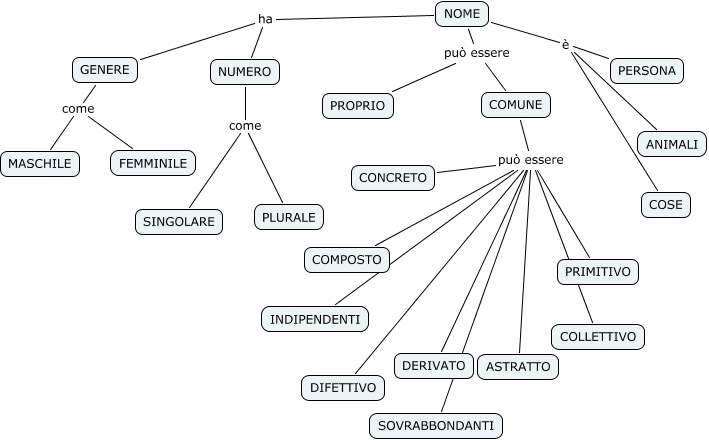 Questa Cmap, creata con IHMC CmapTools, contiene informazioni relative a: NOME, COMUNE può essere SOVRABBONDANTI, NOME può essere PROPRIO, COMUNE può essere DERIVATO, NUMERO come PLURALE, COMUNE può essere CONCRETO, NUMERO come SINGOLARE, COMUNE può essere ASTRATTO, NOME può essere COMUNE, NOME è PERSONA, NOME ha NUMERO, NOME è COSE, COMUNE può essere DIFETTIVO, COMUNE può essere COLLETTIVO, COMUNE può essere PRIMITIVO, COMUNE può essere COMPOSTO, GENERE come FEMMINILE, NOME è ANIMALI, COMUNE può essere INDIPENDENTI, GENERE come MASCHILE, NOME ha GENERE