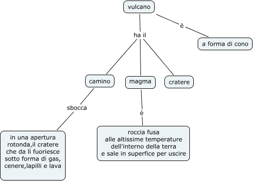 Questa Cmap, creata con IHMC CmapTools, contiene informazioni relative a: vulcano_camillo, vulcano è a forma di cono, vulcano ha il cratere, camino sbocca in una apertura rotonda,il cratere che da lì fuoriesce sotto forma di gas, cenere,lapilli e lava, vulcano ha il magma, vulcano ha il camino, magma è roccia fusa alle altissime temperature dell'interno della terra e sale in superfice per uscire