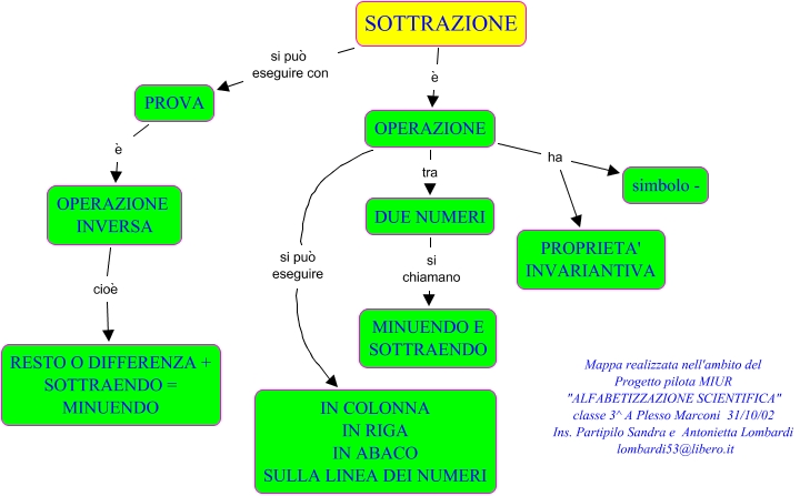 Questa Cmap, creata con IHMC CmapTools, contiene informazioni relative a: Sottrazione, OPERAZIONE ha PROPRIETA' INVARIANTIVA, OPERAZIONE ha simbolo -, OPERAZIONE INVERSA cioè RESTO O DIFFERENZA + SOTTRAENDO = MINUENDO, SOTTRAZIONE è OPERAZIONE, PROVA è OPERAZIONE INVERSA, DUE NUMERI si chiamano MINUENDO E SOTTRAENDO, OPERAZIONE tra DUE NUMERI, SOTTRAZIONE si può eseguire con PROVA, OPERAZIONE si può eseguire IN COLONNA IN RIGA IN ABACO SULLA LINEA DEI NUMERI