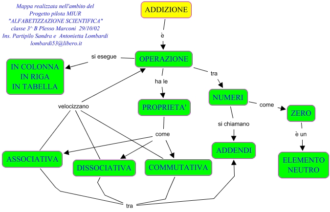Questa Cmap, creata con IHMC CmapTools, contiene informazioni relative a: Addizione, PROPRIETA' come DISSOCIATIVA, OPERAZIONE ha le PROPRIETA', PROPRIETA' come COMMUTATIVA, ASSOCIATIVA velocizzano OPERAZIONE, ADDIZIONE è OPERAZIONE, DISSOCIATIVA velocizzano OPERAZIONE, PROPRIETA' come ASSOCIATIVA, NUMERI come ZERO, OPERAZIONE si esegue IN COLONNA IN RIGA IN TABELLA, COMMUTATIVA velocizzano OPERAZIONE, ZERO è un ELEMENTO NEUTRO, NUMERI si chiamano ADDENDI, OPERAZIONE tra NUMERI, DISSOCIATIVA tra ADDENDI, COMMUTATIVA tra ADDENDI, ASSOCIATIVA tra ADDENDI