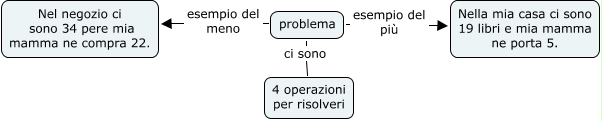 Questa Cmap, creata con IHMC CmapTools, contiene informazioni relative a: problemaGABR, problema esempio del meno Nel negozio ci sono 34 pere mia mamma ne compra 22., problema esempio del più Nella mia casa ci sono 19 libri e mia mamma ne porta 5., problema ci sono 4 operazioni per risolveri