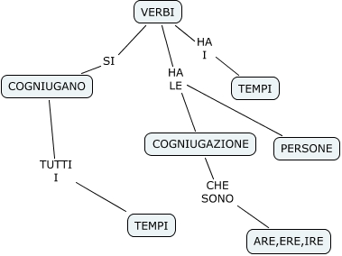 Questa Cmap, creata con IHMC CmapTools, contiene informazioni relative a: VERBI, VERBI SI COGNIUGANO, VERBI HA LE COGNIUGAZIONE, COGNIUGAZIONE CHE SONO ARE,ERE,IRE, VERBI HA LE PERSONE, VERBI HA I TEMPI, COGNIUGANO TUTTI I TEMPI