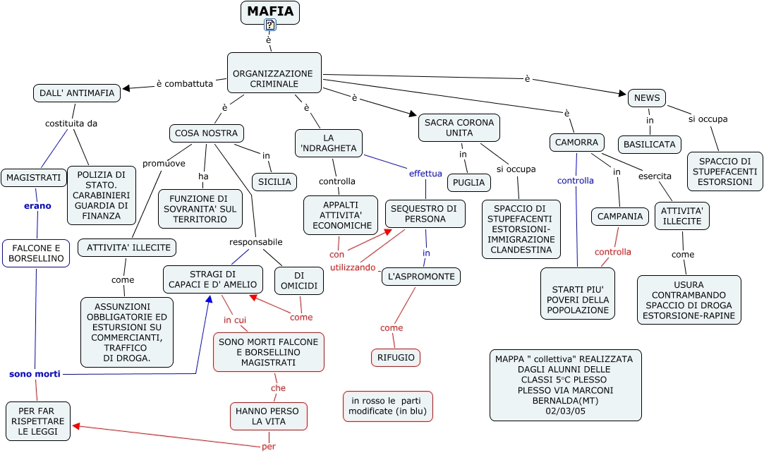 Questa Cmap, creata con IHMC CmapTools, contiene informazioni relative a: LA MAFIA_rev, COSA NOSTRA in SICILIA, SONO MORTI FALCONE E BORSELLINO MAGISTRATI che HANNO PERSO LA VITA, SEQUESTRO DI PERSONA in L'ASPROMONTE, ATTIVITA' ILLECITE come ASSUNZIONI OBBLIGATORIE ED ESTURSIONI SU COMMERCIANTI, TRAFFICO DI DROGA., CAMPANIA controlla STARTI PIU' POVERI DELLA POPOLAZIONE, ORGANIZZAZIONE CRIMINALE è SACRA CORONA UNITA, HANNO PERSO LA VITA per PER FAR RISPETTARE LE LEGGI, ATTIVITA' ILLECITE come USURA CONTRAMBANDO SPACCIO DI DROGA ESTORSIONE-RAPINE, ORGANIZZAZIONE CRIMINALE è COSA NOSTRA, CAMORRA esercita ATTIVITA' ILLECITE, L'ASPROMONTE come RIFUGIO, DALL' ANTIMAFIA costituita da POLIZIA DI STATO. CARABINIERI GUARDIA DI FINANZA, APPALTI ATTIVITA' ECONOMICHE con SEQUESTRO DI PERSONA, COSA NOSTRA ha FUNZIONE DI SOVRANITA' SUL TERRITORIO, DALL' ANTIMAFIA costituita da MAGISTRATI, NEWS in BASILICATA, SACRA CORONA UNITA in PUGLIA, NEWS si occupa SPACCIO DI STUPEFACENTI ESTORSIONI, STRAGI DI CAPACI E D' AMELIO in cui SONO MORTI FALCONE E BORSELLINO MAGISTRATI, CAMORRA controlla STARTI PIU' POVERI DELLA POPOLAZIONE