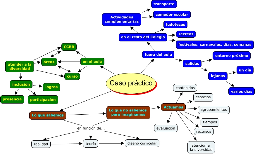 Este Cmap, tiene información relacionada con: Supuesto práctico, en el resto del Colegio Actividades complementarias, fuera del aula en el resto del Colegio, en el aula CCBB, en el resto del Colegio recreos, realidad teoría, Caso práctico Lo que sabemos, Lo que sabemos en función de... realidad, inclusión presencia, atender a la diversidad CCBB, Actuamos recursos, Lo que no sabemos pero imaginamos en función de... realidad, Actuamos evaluación, Actuamos espacios, Actuamos agrupamientos, lejanas varios días, atender a la diversidad inclusión, inclusión participación, Lo que no sabemos pero imaginamos en función de... diseño curricular, Actuamos atención a la diversidad, fuera del aula salidas