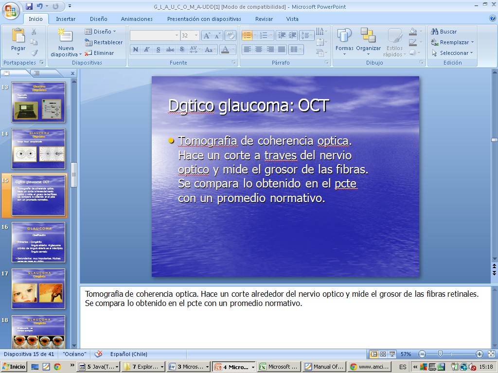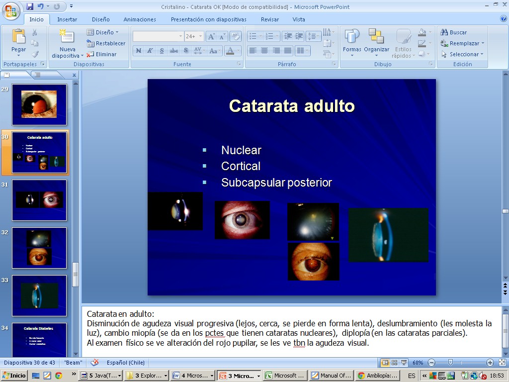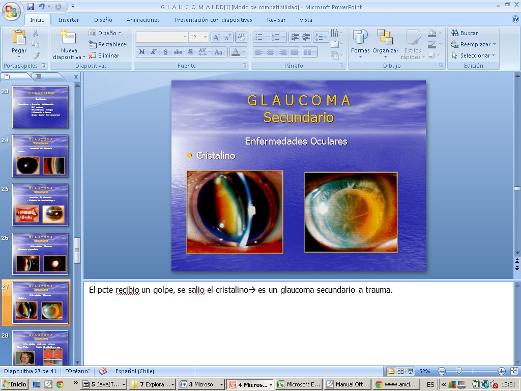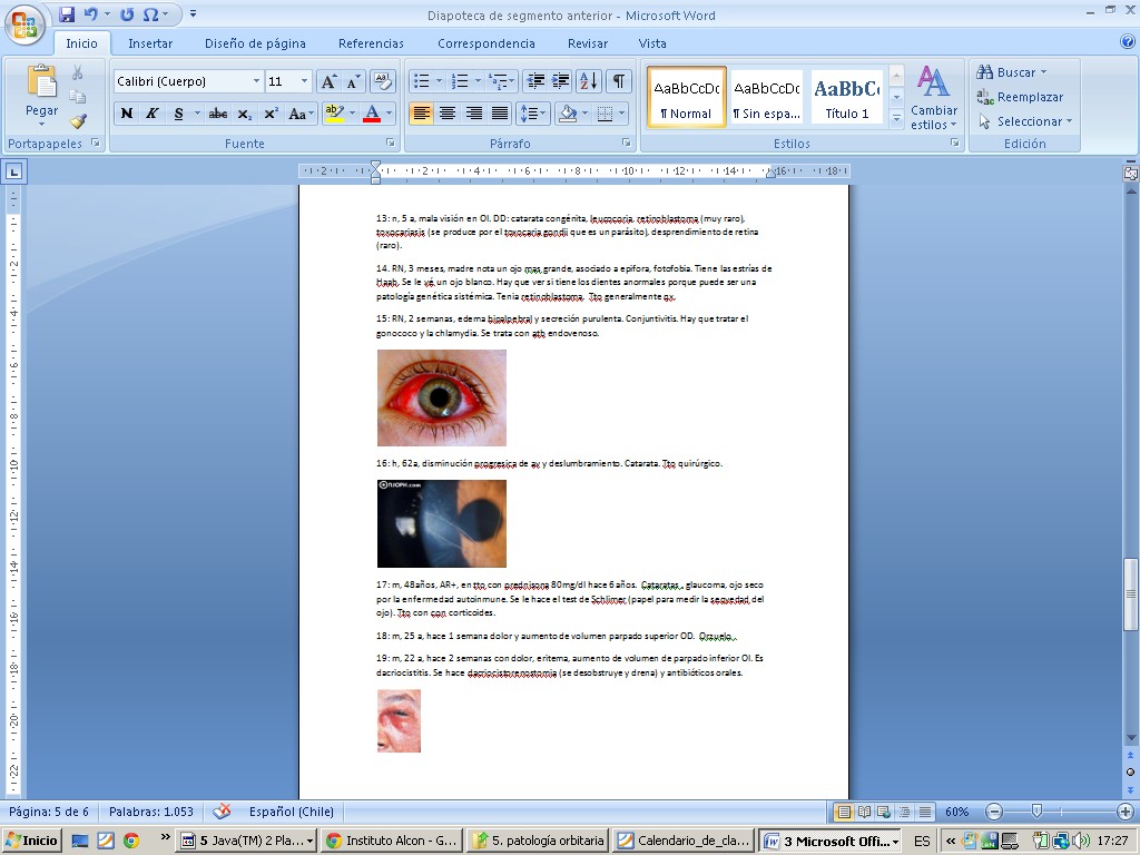 Recursos para glaucoma Recursos para neurooftalmológia Recursos para patología orbitaria acomodacion.ppt acomodación del cristalino.jpg acomodación del cristalino 2.jpg adherencia de retina ns a epit pigmentario.jpg agudeza visual y Hirchberg en niños.jpg alineamiento y motil- y reflejos pupilares.jpg alphagan.jpg alt campimetricas 1.jpg alt campimetricas 2.jpg alt campimetricas 3.jpg alt campimetricas 4.jpg alt vasculares en retina.jpg amaurosis fugax- diapoteca.jpg ambliopía.jpg ambliopía 2.jpg anamnesis cataratas gral.jpg anamnesis remota oftalmologia.jpg anamnesis y ex físico.jpg anom_pupilares.ppt areas visuales corticales.jpg astigmatismo.jpg atrofia de papila.jpg balance hidroelectrolítico.jpg Bases de la oftalmología.cmap campo visual comp.jpg campo visual glaucoma.jpg campo visual normal.jpg campo visual por confrontación.jpg caso clinico segm anterior- 2.jpg caso clinico segmento ant- 1.jpg caso clinico segmento post-1.jpg caso clin segm ant 3.jpg caso clin segm ant 4.jpg catarata congénita.jpg catarata del adulto.jpg catarata infantil.jpg catarata infantil 2.jpg catarata rubeola.jpg cataratas.cmap cataratas congénitas.jpg cataratas diabetes.jpg cataratas en diabetes.jpg cataratas- Marfan.jpg cataratas y enf asociadas.jpg causas de anisocoria excepto paralisis III par.jpg causas de neuritis opticas.jpg causas de ojo rojo.jpg causas de parálisis del IV par.jpg causas de paral VI par.jpg causas de perdida de visión en RD.jpg Causas DR exudativo 1.jpg causas DR exudativo 2.jpg causas mas frecuentes por oculomotor.jpg c con sec muc o mp - bacteriana- aguda.jpg c con secreción mucosa o sertosa- alergica.jpg c con sec serosa- viral.jpg celulitis orbitaria.jpg celulitis orbitaria preseptal.jpg celulitis postseptal.jpg celulitis preseptal.jpg c filtrante o trabeculectomia.jpg chalazion.jpg cirugia ciclodestructiva.jpg cirugía ojo.jpg Cirugia refractiva.url clasificacion antigua RD.jpg clasificación cataratas.jpg clasificación del t ocular.jpg clasificaciones antiguas de RD.jpg clasificación glaucoma.jpg Clasificación mas usada de RD.jpg clasificación ojo rojo.jpg clinica glaucoma.jpg clinica segmento post.jpg clinica y FO- RD.jpg colobomas.jpg comparación de neuropatias opticas.jpg comrpomiso papilar según tipo de neuritis optica.jpg conjuntiva.jpg conjuntiva 0.jpg conjuntivitis crónica.jpg conjuntivitis folicular.jpg conjuntivitis neonatal.jpg conjuntivitis papilar.jpg conjuntivitis pseudomemb o memb.jpg cornea y refractariedad.jpg cover test 1.jpg cover test 2.jpg cristalino.jpg cruce vvss retin.jpg cuadrantopsia homónima.jpg cuándo derivar y otros tips.jpg cuerpos geniculados.jpg CV_occipital.ppt CV_quiasma.ppt DD anisocoria.jpg DD anisocoria 2.jpg dd conjuntivitis.jpg dd ojo rojo 2.jpg dd ojo rojo 3.jpg def altitudinal inf OI en NOIANA.jpg Defecto_pupilar_aferente.ppt def f de ojo.jpg deg macu senil.jpg derivados prostaglandinas.jpg desarrollo de la visión.jpg despr_retina.ppt Desprendimiento_retina.ppt desprendimiento de retina.cmap dgtico ambliopia.jpg diapoteca segmento anterior.jpg diapoteca segmento anterior 2.jpg diapoteca segmento anterior 3.jpg diapoteca segmento anterior 4.jpg diapoteca segmento anterior 5.jpg diapoteca segmento anterior 6.jpg diapoteca segm post 2.jpg diapoteca segm posterior 3.jpg diapoteca seg posterior.jpg diapot segm post 5.jpg diap segm post 4.jpg DR exudativo- melanoma coroideo.jpg DR regmatógeno.jpg DR reugmatógeno 3.jpg DR tractivo.jpg edema papila.jpg emetropía.jpg epidem glaucoma 2.jpg epidemiologia glaucoma.jpg epiescleritis.jpg escleritis.jpg escotoma central de neuritis optica.jpg escotomas UAB.pdf esquema de n optico a corteza.jpg estrabismo.jpg estrabismo 2.jpg estudio de pupilas.jpg etiologias oft segun edad.jpg etiologías ulceras corneales.jpg ev agudeza visual 1.jpg ev agudeza visual 2.jpg ev agu visual en niños 4 y mas años.jpg ev ag visual en niños preverbales-2 años.jpg ev campo visual.jpg eversión de parpados.jpg ev mov oculares 1.jpg ev mov oculares 2.jpg ev neurooftalmologia.jpg ev t ocular 2.jpg ev t ocular 3.jpg ev t ocular 4.jpg ev trauma ocular 1.jpg examenes glaucoma.jpg examen externmo oft 1.jpg exam externo 2 oft.jpg excav papil.jpg excav papila.jpg ex externo 3 oft.jpg ex externo 4 oft.jpg ex ocular en pcte con ojo rojo.jpg ex ocular pediátrico.jpg factores de riesgo glaucoma.jpg factores de riesgo o asociados a DR.jpg factores predisp p corneal.jpg f de ojo normal.jpg f de ojo normal 2.jpg f de riesgo cataratas.jpg flujo humor acuoso.jpg fondo de ojo.jpg fondo de ojo.cmap fondo de ojo glaucoma.jpg fondo de ojo HIC.jpg fondo ojo glaucoma.jpg FO RD.jpg FP glaucoma.jpg FP glaucoma ag.jpg FP RD.jpg fractores asociados o de riesgo a DR.jpg fractura de orbita.jpg fractura de órbita 2.jpg fractura de orbita 3.jpg ganglios conj y parpado.jpg GES y tiempo garantizado para derivar t ocular.jpg glaucoma.cmap glaucoma agudo de angulo cerrado.jpg glaucoma congénito.jpg glaucoma cronico- abierto.jpg glaucoma por corticoides y PIO.jpg glauc sec a trauma.jpg glauc sec congenito-aniridia.jpg glauc sec- cong- sd axenfeld-rieger.jpg glauc sec- pigmentario.jpg glauc sec por enf sistemica.jpg glauc secund a drogas.jpg glauc secundarios.jpg glau primario.jpg goldman.jpg gonioscopia.jpg gonioscopía.jpg hemangioma cavernoso.jpg hemangioma cavernoso 2.jpg hemorragia subconjuntival.jpg hem subconjunt 2.jpg hem subconjuntival.jpg herencia enf oftalmo.jpg HIC vs neuritis optica.jpg hipermetropía.jpg Histología de la córnea.jpg HTA y ojo.jpg humphrey.jpg image.jpg imagegrados de RHTA.jpg imagenes en oftalmo.jpg imagenes en RD.jpg imagep corneal.jpg importancia de las cataratas.jpg indicaciones de f de ojo.jpg Internet.I_Agud.vis.refracc._esp.pdf Internet - Agudeza_visual_esp.pdf Internet-tipos de lentes.jpg inyeccion c prof.jpg inyección c superficial.jpg iris.jpg iritis.jpg irrigación conjuntiva.jpg lagrima y refractariedad.jpg lesión de cintillas ópticas.jpg lesión de n optico 1.jpg lesion de radiacio