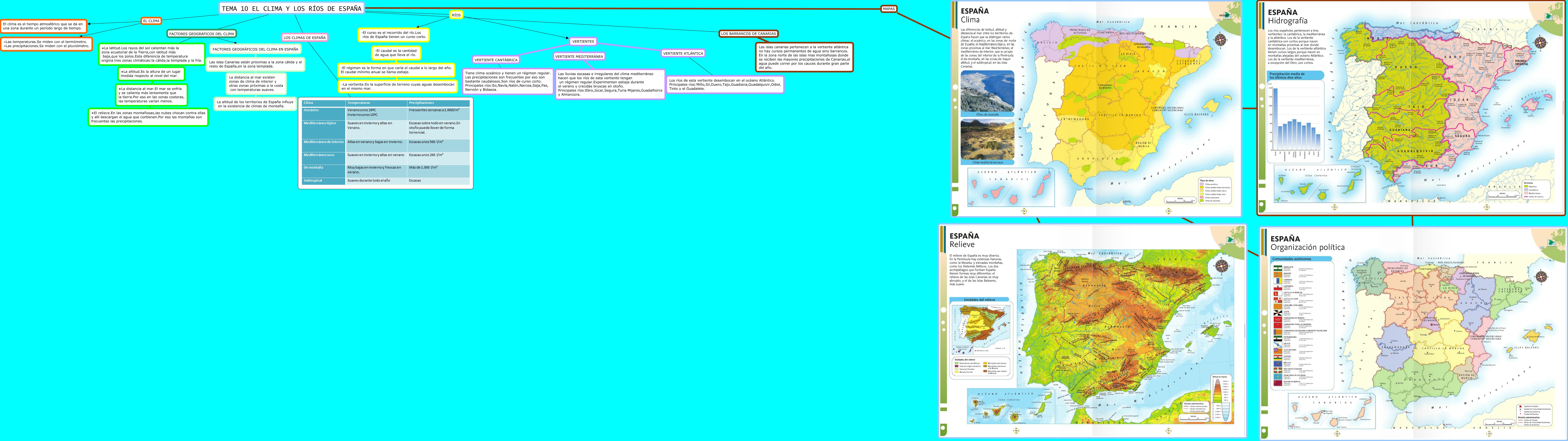 Este Cmap, tiene información relacionada con: tEMA 10, TEMA 10 EL CLIMA Y LOS RÍOS DE ESPAÑA EL CLIMA ∘Las temperaturas.Se miden con el termómetro. ∘Las precipitaciones.Se miden con el pluviómetro., TEMA 10 EL CLIMA Y LOS RÍOS DE ESPAÑA LOS CLIMAS DE ESPAÑA,, TEMA 10 EL CLIMA Y LOS RÍOS DE ESPAÑA FACTORES GEOGRÁFICOS DEL CLIMA ∗La latitud.Los rayos del sol calientan más la zona ecuatorial de la Tierra,con latitud más baja,que los polos.Esta diferencia de temperatura origina tres zonas climáticas:la cálida,la templada y la fría.,, TEMA 10 EL CLIMA Y LOS RÍOS DE ESPAÑA FACTORES GEOGRÁFICOS DEL CLIMA FACTORES GEOGRÁFICOS DEL CLIMA EN ESPAÑA, VERTIENTES VERTIENTE ATLÁNTICA Los ríos de esta vertiente desembocan en el océano Atlántico. Principales ríos:Miño,Sil,Duero,Tajo,Guadiana,Guadalquivir,Odiel, Tinto y el Guadalete., La distancia al mar existen zonas de clima de interior y otras zonas próximas a la costa con temperaturas suaves. ???? La altitud de los territorios de España influye en la existencia de climas de montaña., TEMA 10 EL CLIMA Y LOS RÍOS DE ESPAÑA EL CLIMA El clima es el tiempo atmosférico que se da en una zona durante un período largo de tiempo., TEMA 10 EL CLIMA Y LOS RÍOS DE ESPAÑA RÍOS -El curso es el recorrido del río.Los ríos de España tienen un curso corto., TEMA 10 EL CLIMA Y LOS RÍOS DE ESPAÑA MAPAS, FACTORES GEOGRÁFICOS DEL CLIMA EN ESPAÑA ???? Las islas Canarias están próximas a la zona cálida y el resto de España,en la zona templada., TEMA 10 EL CLIMA Y LOS RÍOS DE ESPAÑA RÍOS VERTIENTES, ∗La altitud.Es la altura de un lugar medida respecto al nivel del mar. ???? ∗La distancia al mar.El mar se enfría y se calienta más lentamente que la tierra.Por eso en las zonas costeras, las temperaturas varían menos., VERTIENTES VERTIENTE CANTÁBRICA Tiene clima oceánico y tienen un régimen regular. Las precipitaciones son frecuentes por eso son bastante caudalosos.Son ríos de curso corto. Principales ríos:Eo,Navía,Nalón,Narcea,Saja,Pas, Nervión y Bidasoa., TEMA 10 EL CLIMA Y LOS RÍOS DE ESPAÑA LOS BARRANCOS DE CANARIAS Las islas canarias pertenecen a la vertiente atlántica no hay cursos permanentes de agua sino barrancos. En la zona norte de las islas mas montañosas donde se reciben las mayores precipitaciones de Canarias,el agua puede correr por los cauces durante gran parte del año., -El régimen es la forma en que varía el caudal a lo largo del año. El caudal mínimo anual se llama estiaje. ???? -La vertiente:Es la superficie de terreno cuyas aguas desembocan en el mismo mar., -El curso es el recorrido del río.Los ríos de España tienen un curso corto. ???? -El caudal es la cantidad de agua que lleva el río., ∗La latitud.Los rayos del sol calientan más la zona ecuatorial de la Tierra,con latitud más baja,que los polos.Esta diferencia de temperatura origina tres zonas climáticas:la cálida,la templada y la fría. ???? ∗La altitud.Es la altura de un lugar medida respecto al nivel del mar., -El caudal es la cantidad de agua que lleva el río. ???? -El régimen es la forma en que varía el caudal a lo largo del año. El caudal mínimo anual se llama estiaje.