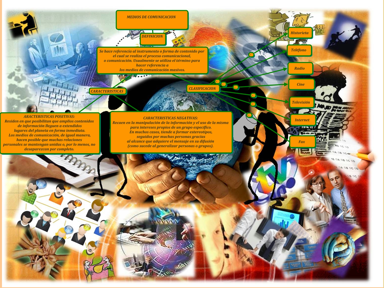 Este Cmap, tiene información relacionada con: MAPA CONCEPTUAL, MEDIOS DE COMUNICACION DEFINICION Se hace referencia al instrumento o forma de contenido por el cual se realiza el proceso comunicacional, o comunicación. Usualmente se utiliza el término para hacer referencia a los medios de comunicación masivos., CLASIFICACION . Cine, CLASIFICACION . Internet, CLASIFICACION . Radio, Se hace referencia al instrumento o forma de contenido por el cual se realiza el proceso comunicacional, o comunicación. Usualmente se utiliza el término para hacer referencia a los medios de comunicación masivos. CARACTERISTICAS ARACTERISTICAS POSITIVAS: Residen en que posibilitan que amplios contenidos de información lleguen a extendidos lugares del planeta en forma inmediata. Los medios de comunicación, de igual manera, hacen posible que muchas relaciones personales se mantengan unidas o, por lo menos, no desaparezcan por completo., CLASIFICACION . Televisión, Se hace referencia al instrumento o forma de contenido por el cual se realiza el proceso comunicacional, o comunicación. Usualmente se utiliza el término para hacer referencia a los medios de comunicación masivos. CARACTERISTICAS CARACTERISTICAS NEGATIVAS: Recaen en la manipulación de la información y el uso de la misma para intereses propios de un grupo específico. En muchos casos, tiende a formar estereotipos, seguidos por muchas personas gracias al alcance que adquiere el mensaje en su difusión (como sucede al generalizar personas o grupos)., Se hace referencia al instrumento o forma de contenido por el cual se realiza el proceso comunicacional, o comunicación. Usualmente se utiliza el término para hacer referencia a los medios de comunicación masivos. ???? CLASIFICACION, CLASIFICACION . Fax, CLASIFICACION . Historieta, CLASIFICACION . Teléfono
