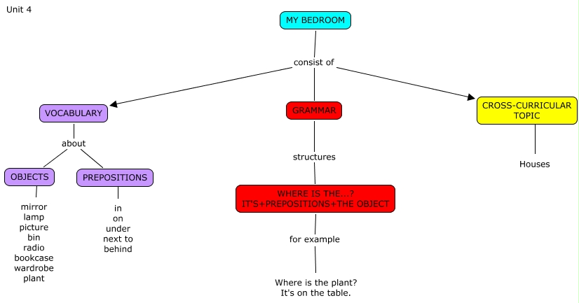Este Cmap, tiene información relacionada con: MY BEDROOM (Joaquín,Miguel F y Eduardo), MY BEDROOM consist of GRAMMAR, PREPOSITIONS ???? in on under next to behind, OBJECTS ???? mirror lamp picture bin radio bookcase wardrobe plant, VOCABULARY about PREPOSITIONS, MY BEDROOM consist of VOCABULARY, GRAMMAR structures WHERE IS THE...? IT'S+PREPOSITIONS+THE OBJECT, CROSS-CURRICULAR TOPIC ???? Houses, MY BEDROOM consist of CROSS-CURRICULAR TOPIC, WHERE IS THE...? IT'S+PREPOSITIONS+THE OBJECT for example Where is the plant? It's on the table., VOCABULARY about OBJECTS