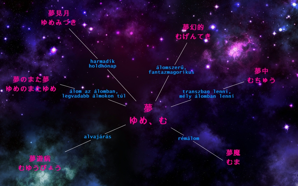 This Concept Map, created with IHMC CmapTools, has information related to: 20130321 AP KM, 夢 ゆめ、む álomszerű, fantazmagorikus 夢幻的 むげんてき, 夢 ゆめ、む harmadik holdhónap 夢見月 ゆめみづき, 夢 ゆめ、む transzban lenni, mély álomban lenni 夢中 むちゅう, 夢 ゆめ、む alvajárás 夢遊病 むゆうびょう, 夢 ゆめ、む álom az álomban, legvadabb álmokon túl 夢のまた夢 ゆめのまたゆめ, 夢 ゆめ、む rémálom 夢魔 むま