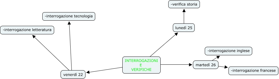 Questa Cmap, creata con IHMC CmapTools, contiene informazioni relative a: Viola Frati, Giorgia, lunedì 25 ???? -verifica storia, INTERROGAZIONI E VERIFICHE ???? martedì 26, venerdì 22 ???? -interrogazione letteratura, INTERROGAZIONI E VERIFICHE ???? venerdì 22, martedì 26 ???? -interrogazione francese, martedì 26 ???? -interrogazione inglese, INTERROGAZIONI E VERIFICHE ???? lunedì 25, venerdì 22 ???? -interrogazione tecnologia