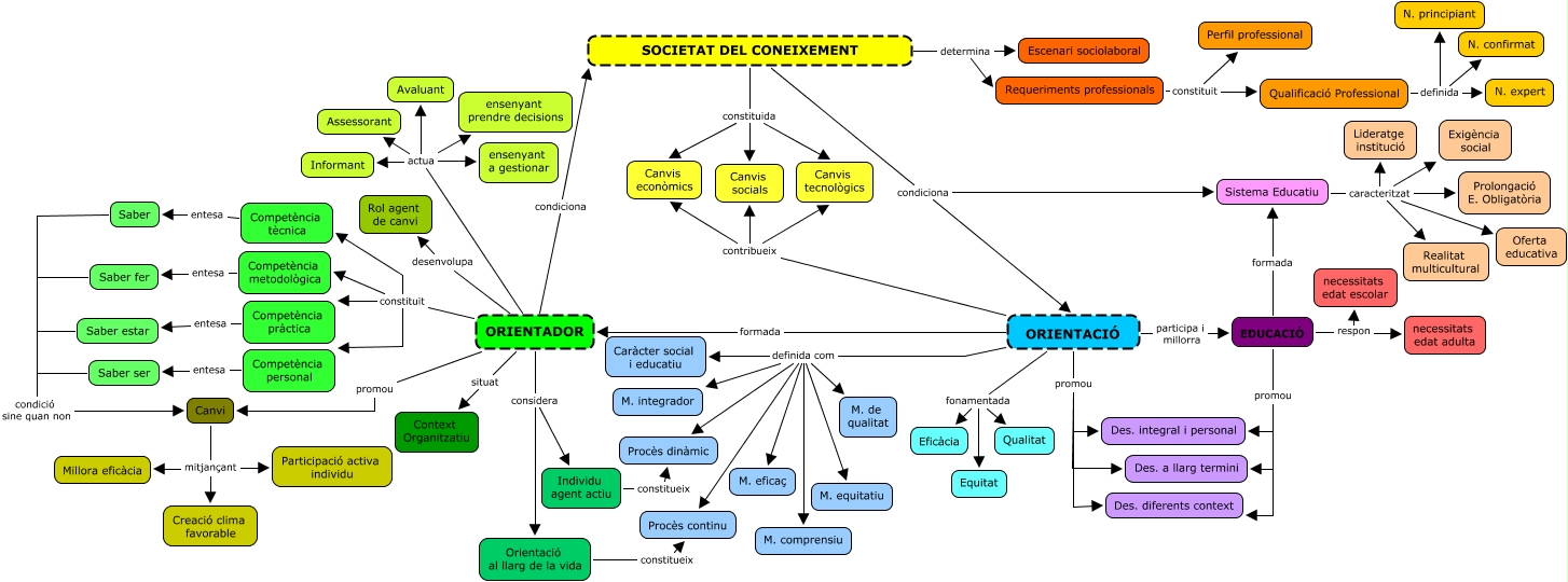 Este Cmap, tiene información relacionada con: mapa conceptual orientació segle XXI, ORIENTADOR promou Canvi, Competència pràctica entesa Saber estar, ORIENTADOR constituit Competència tècnica, ORIENTADOR situat Context Organitzatiu, Competència metodològica entesa Saber fer, ORIENTADOR actua ensenyant prendre decisions, ORIENTACIÓ fonamentada Eficàcia, Sistema Educatiu caracteritzat Lideratge institució, ORIENTADOR actua Assessorant, ORIENTACIÓ definida com M. comprensiu, ORIENTADOR actua Informant, ORIENTACIÓ definida com M. de qualitat, EDUCACIÓ promou Des. integral i personal, Sistema Educatiu caracteritzat Exigència social, ORIENTACIÓ contribueix Canvis socials, Qualificació Professional definida N. principiant, Sistema Educatiu caracteritzat Prolongació E. Obligatòria, Qualificació Professional definida N. confirmat, EDUCACIÓ respon necessitats edat adulta, ORIENTADOR considera Individu agent actiu
