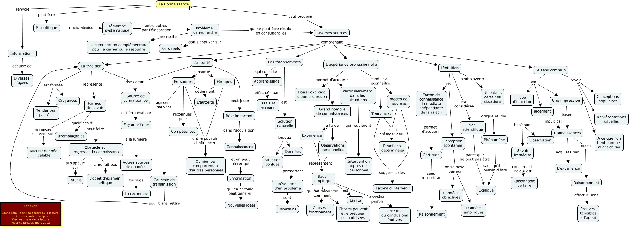 Cette carte de concepts créée avec IHMC CmapTools traite de: La connaissance, Groupes ont le pouvoir d'influencer Opinion ou comportement d'autres personnes, Formes de savoir qualifiées d' Irremplaçables, Connaissances acquises par L'expérience, Grand nombre de connaissances à l'aide Observations personnelles, Résolution d'un problème sont Incertains, Obstacle au progrès de la connaissance si ne fait pas L'objet d'examen critique, Raisonnement effectué sans Preuves tangibles à l'appui, La Connaissance peut être Scientifique, Particulièrement dans les situations qui requièrent Intervention auprès des personnes, L'autorité peut jouer Rôle important, Phénomène sans qu'il ait besoin d'être Expliqué, Le sens commun revoie À ce que l'on tient comme allant de soi, Problème de recherche doit s'appuyer sur Faits réels, Diverses sources comprenant L'expérience professionnelle, Une impression basée Connaissances, Groupes détiennent L'autorité, Obstacle au progrès de la connaissance si s'appuie sur Rituels, Grand nombre de connaissances à l'aide Expérience, Données permettant Résolution d'un problème, Personnes détiennent L'autorité