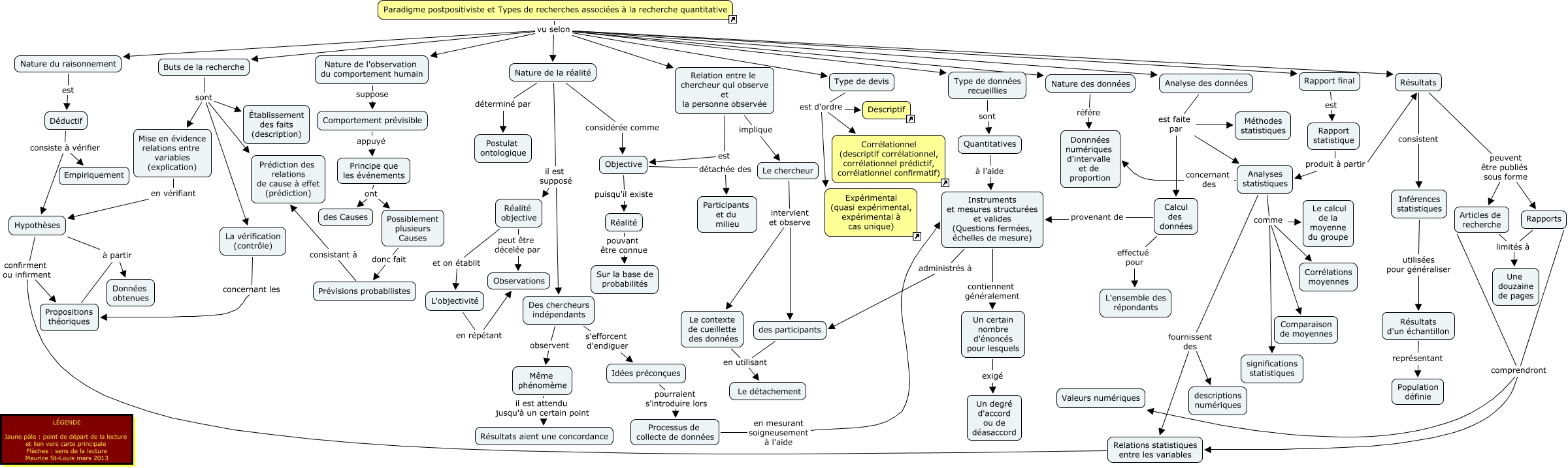 Cette carte de concepts créée avec IHMC CmapTools traite de: Paradigme Postpositiviste et type de recherches associées à la recherche quantitative, Propositions théoriques à partir Données obtenues, Relation entre le chercheur qui observe et la personne observée est Objective, Analyse des données est faite par Calcul des données, Nature de la réalité considérée comme Objective, Même phénomème il est attendu jusqu'à un certain point Résultats aient une concordance, Quantitatives à l'aide Instruments et mesures structurées et valides (Questions fermées, échelles de mesure), Nature des données référe Donnnées numériques d'intervalle et de proportion, Calcul des données provenant de Instruments et mesures structurées et valides (Questions fermées, échelles de mesure), Objective puisqu'il existe Réalité, Comportement prévisible appuyé Principe que les événements, Déductif consiste à vérifier Hypothèses, Rapports comprendront Valeurs numériques, Paradigme postpositiviste et Types de recherches associées à la recherche quantitative vu selon Analyse des données, Idées préconçues pourraient s'introduire lors Processus de collecte de données, Résultats peuvent être publiés sous forme Rapports, Résultats d'un échantillon représentant Population définie, Résultats consistent Inférences statistiques, Des chercheurs indépendants observent Même phénomème, Paradigme postpositiviste et Types de recherches associées à la recherche quantitative vu selon Buts de la recherche, Nature de la réalité déterminé par Postulat ontologique