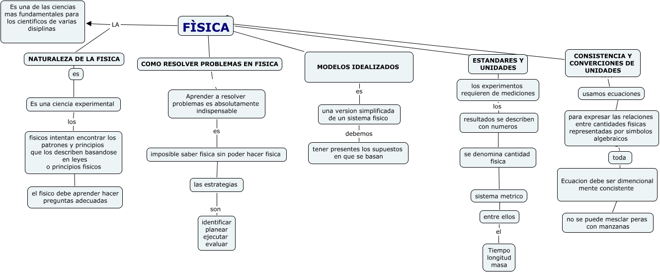 Este Cmap, tiene información relacionada con: mapa con, entre ellos el Tiempo longitud masa, Es una ciencia experimental los fisicos intentan encontrar los patrones y principios que los describen basandose en leyes o principios fisicos, toda ???? no se puede mesclar peras con manzanas, MODELOS IDEALIZADOS ???? FÌSICA, COMO RESOLVER PROBLEMAS EN FISICA ???? FÌSICA, usamos ecuaciones ???? para expresar las relaciones entre cantidades fisicas representadas por simbolos algebraicos, una version simplificada de un sistema fisico debemos tener presentes los supuestos en que se basan, FÌSICA ???? ESTANDARES Y UNIDADES, CONSISTENCIA Y CONVERCIONES DE UNIDADES ???? FÌSICA, NATURALEZA DE LA FISICA ???? Es una ciencia experimental, Aprender a resolver problemas es absolutamente indispensable es imposible saber fisica sin poder hacer fisica, CONSISTENCIA Y CONVERCIONES DE UNIDADES ???? usamos ecuaciones, FÌSICA LA Es una de las ciencias mas fundamentales para los cientificos de varias disiplinas, COMO RESOLVER PROBLEMAS EN FISICA Aprender a resolver problemas es absolutamente indispensable, resultados se describen con numeros los los experimentos requieren de mediciones, ESTANDARES Y UNIDADES ???? los experimentos requieren de mediciones, se denomina cantidad fisica ???? sistema metrico, fisicos intentan encontrar los patrones y principios que los describen basandose en leyes o principios fisicos ???? el fisico debe aprender hacer preguntas adecuadas, MODELOS IDEALIZADOS es una version simplificada de un sistema fisico, imposible saber fisica sin poder hacer fisica ???? las estrategias