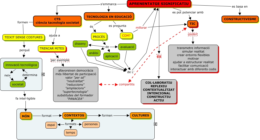 Este Cmap, tiene información relacionada con: MAPA CONCEPTUAL 2 (2), PROCÉS de disseny, COM? millorar APRENENTATGE SIGNIFICATIU, PROCÉS de aplicació, societat determina innovació tecnològica, disseny de L' APRENENTATGE SIGNIFICATIU, anàlisi de L' APRENENTATGE SIGNIFICATIU, APRENENTATGE SIGNIFICATIU ÉS COL·LABORATIU REFLEXIU CONTEXTUALITZAT INTENCIONAL CONSTRUCTIU ACTIU, APRENENTATGE SIGNIFICATIU es pot potenciar amb TIC, CONTEXTOS formats persones, CONTEXTOS formats espai, APRENENTATGE SIGNIFICATIU es basa en CONSTRUCTIVISME, innovació tecnològica neix societat, TEIXIT SENSE COSTURES perqué CONCEPCIÓ OLÍSTICA, CTS ciència tacnologia societat ajuda a TRENCAR MITES, TIC poden transmetre informació simular realitat crear entorns flexibles motivar ajudar a estructurar realitat facilitar comunicació interactuar amb diferents codis, COM? millorar TIC, aplicació de L' APRENENTATGE SIGNIFICATIU, TRENCAR MITES per exemple afavoreixen democràcia més llibertat de participació valor "per sé" "neutralitat" "reduccions" "ampliacions" "supertecnologia" substitutes del formador "PANACEA", CONTEXTOS formats temps, afavoreixen democràcia més llibertat de participació valor "per sé" "neutralitat" "reduccions" "ampliacions" "supertecnologia" substitutes del formador "PANACEA" compartits TIC