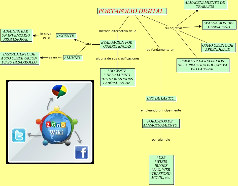 Este Cmap, tiene información relacionada con: CAPITULo 10. PORTAFOLIO DIGITAL, DOCENTE le sirve para ADMINISTRAR UN INVENTARIO PROFESIONAL, EVALUACION POR COMPETENCIAS para ALUMNO, PORTAFOLIO DIGITAL su objetivo EVALUACION DEL DESEMPEÑO, EVALUACION POR COMPETENCIAS para DOCENTE, PORTAFOLIO DIGITAL metodo alternativo de la EVALUACION POR COMPETENCIAS, EVALUACION POR COMPETENCIAS alguna de sus clasificaciones *DOCENTE * DEL ALUMNO *DE HABILIDADES LABORALES, etc., PORTAFOLIO DIGITAL su objetivo COMO OBJETO DE APRENDIZAJE, USO DE LAS TIC empleando principalmente FORMATOS DE ALMACENAMIENTO, PORTAFOLIO DIGITAL se fundamenta en USO DE LAS TIC, ALUMNO es un INSTRUMENTO DE AUTO OBSERVACION DE SU DESARROLLO, FORMATOS DE ALMACENAMIENTO por ejemplo * USB *WIKIS *BLOGS *PAG. WEB *TELEFONIA MOVIL, etc., PORTAFOLIO DIGITAL su objetivo PERMITIR LA RELFEXION DE LA PRACTICA EDUCATIVA Y/O LABORAL, PORTAFOLIO DIGITAL su objetivo ALMACENAMIENTO DE TRABAJOS