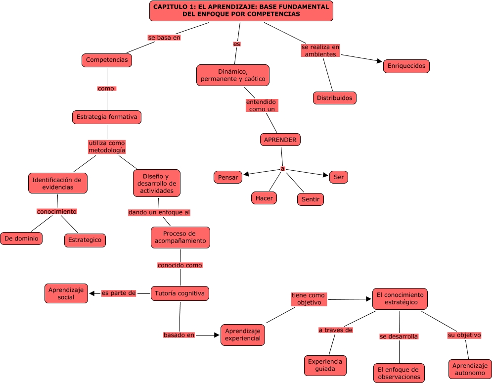 Este Cmap, tiene información relacionada con: CAPITULO 1 EL APRENDIZAJE BASE FUNDAMENTAL DEL ENFOQUE POR COMPETENCIAS, Tutoría cognitiva es parte de Aprendizaje social, Aprendizaje experiencial tiene como objetivo El conocimiento estratégico, CAPITULO 1: EL APRENDIZAJE: BASE FUNDAMENTAL DEL ENFOQUE POR COMPETENCIAS se realiza en ambientes Distribuidos, CAPITULO 1: EL APRENDIZAJE: BASE FUNDAMENTAL DEL ENFOQUE POR COMPETENCIAS se realiza en ambientes Enriquecidos, Estrategia formativa utiliza como metodología Diseño y desarrollo de actividades, El conocimiento estratégico se desarrolla El enfoque de observaciones, Competencias como Estrategia formativa, Diseño y desarrollo de actividades dando un enfoque al Proceso de acompañamiento, Identificación de evidencias conocimiento De dominio, El conocimiento estratégico su objetivo Aprendizaje autonomo, Estrategia formativa utiliza como metodología Identificación de evidencias, APRENDER a Pensar, CAPITULO 1: EL APRENDIZAJE: BASE FUNDAMENTAL DEL ENFOQUE POR COMPETENCIAS es Dinámico, permanente y caótico, APRENDER a Hacer, Identificación de evidencias conocimiento Estrategico, El conocimiento estratégico a traves de Experiencia guiada, Dinámico, permanente y caótico entendido como un APRENDER, APRENDER a Sentir, APRENDER a Ser, Proceso de acompañamiento conocido como Tutoría cognitiva