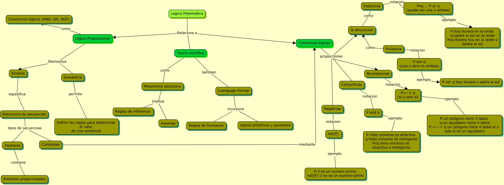 Este Cmap, tiene información relacionada con: capitulo 13, Negativas notacion not(P), Lógica Proposicional como Conectivos lógicos (AND, OR, NOT), Bicondicional notacion P<--> q (si y solo si), Complejas mediante Conectivas logicas, Conectivas logicas proporciones Bicondicional, Indunciva notacion Pvq , P or q (puede ser una o ambas), Lógica Proposicional Elementos Sintaxis, Mecanismo deductivo implica Reglas de inferencia, Estructura de secuencias tipos de secuencias Complejas, Mecanismo deductivo implica Axiomas, Logica Matematica Relaciona a Lógica Proposicional, not(P) ejemplo P:3 es un numero primo not(P):3 no es un numero primo, Lógica Proposicional Elementos Semantica, Exclusiva notacion P xor q (una u otra no ambas), Indunciva como la disyuncion, Conectivas logicas proporciones la disyuncion, Exclusiva como la disyuncion, Logica Matematica Relaciona a Conectivas logicas, Pvq , P or q (puede ser una o ambas) ejemplo P:hoy llovera en la terde q:saldra el sol en la terde Pvq:llovera hoy en la tarde o saldra el sol, Teoria cientifica tambien Luenguaje Formal