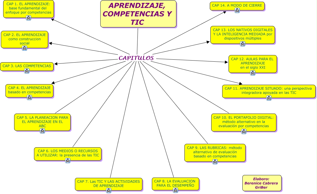 Este Cmap, tiene información relacionada con: GENERAL, APRENDIZAJE, COMPETENCIAS Y TIC CAPITULOS CAP 4. EL APRENDIZAJE basado en competencias, APRENDIZAJE, COMPETENCIAS Y TIC CAPITULOS CAP 10. EL PORTAFOLIO DIGITAL: método alternativo en la evaluación por competencias, APRENDIZAJE, COMPETENCIAS Y TIC CAPITULOS CAP 11. APRENDIZAJE SITUADO: una perspectiva integradora apoyada en las TIC, APRENDIZAJE, COMPETENCIAS Y TIC CAPITULOS CAP 6. LOS MEDIOS O RECURSOS A UTILIZAR: la presencia de las TIC, APRENDIZAJE, COMPETENCIAS Y TIC CAPITULOS CAP 9. LAS RUBRICAS: método alternativo de evaluación basado en competencias, APRENDIZAJE, COMPETENCIAS Y TIC CAPITULOS CAP 14. A MODO DE CIERRE, APRENDIZAJE, COMPETENCIAS Y TIC CAPITULOS CAP 13. LOS NATIVOS DIGITALES Y LA INTELIGENCIA MEDIADA por dispositivos múltiples, APRENDIZAJE, COMPETENCIAS Y TIC CAPITULOS CAP 2. EL APRENDIZAJE como construccion social, APRENDIZAJE, COMPETENCIAS Y TIC CAPITULOS CAP 12. AULAS PARA EL APRENDIZAJE en el siglo XXI, APRENDIZAJE, COMPETENCIAS Y TIC CAPITULOS CAP 3. LAS COMPETENCIAS, APRENDIZAJE, COMPETENCIAS Y TIC CAPITULOS CAP 7. Las TIC Y LAS ACTIVIDADES DE APRENDIZAJE, APRENDIZAJE, COMPETENCIAS Y TIC CAPITULOS CAP 8. LA EVALUACION PARA EL DESEMPEÑO, APRENDIZAJE, COMPETENCIAS Y TIC CAPITULOS CAP 5. LA PLANEACION PARA EL APRENDIZAJE EN EL ABC, APRENDIZAJE, COMPETENCIAS Y TIC CAPITULOS CAP 1. EL APRENDIZAJE: base fundamental del enfoque por competencias