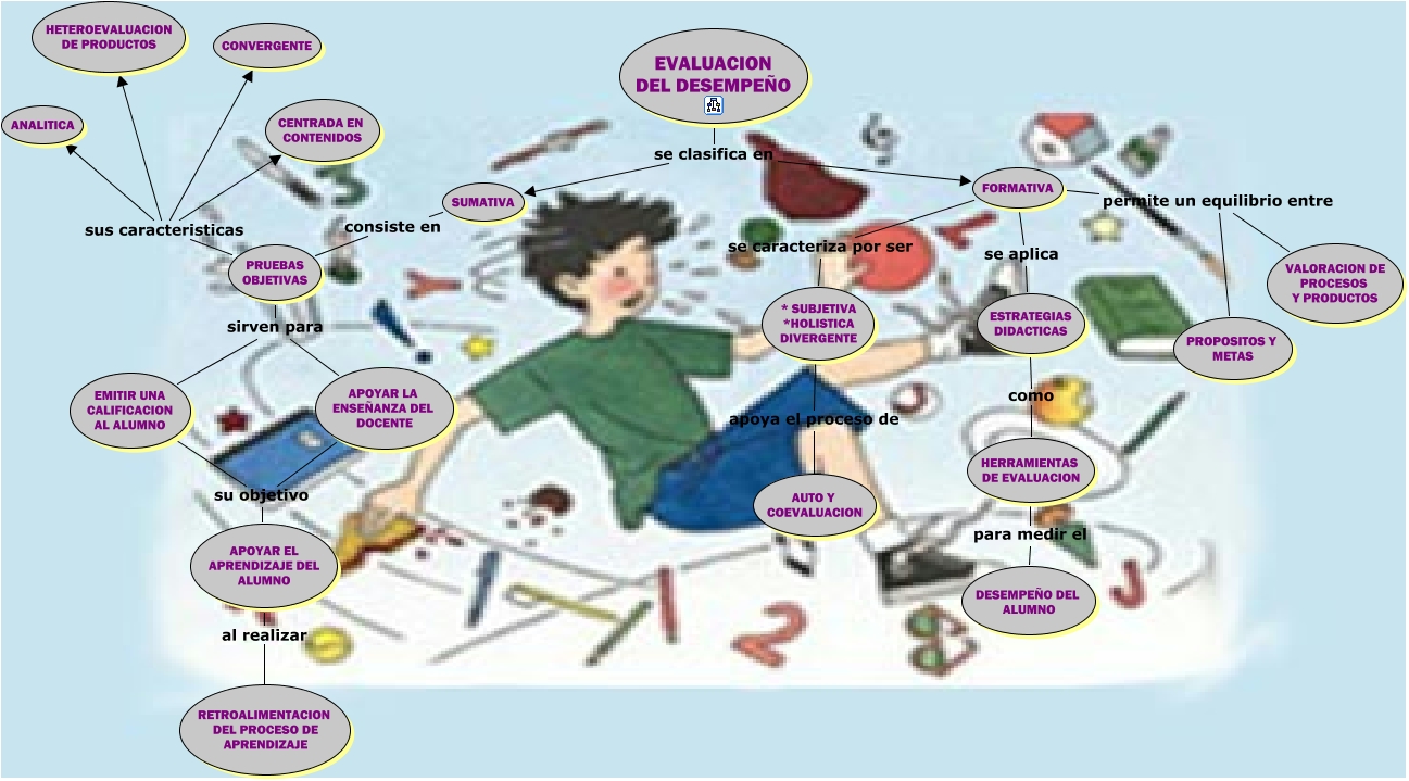 Este Cmap, tiene información relacionada con: CAPITULO 8. EVALUACION DEL DESEMPEÑO, PRUEBAS OBJETIVAS sus caracteristicas HETEROEVALUACION DE PRODUCTOS, SUMATIVA consiste en PRUEBAS OBJETIVAS, EMITIR UNA CALIFICACION AL ALUMNO su objetivo APOYAR EL APRENDIZAJE DEL ALUMNO, PRUEBAS OBJETIVAS sus caracteristicas CONVERGENTE, PRUEBAS OBJETIVAS sus caracteristicas CENTRADA EN CONTENIDOS, FORMATIVA se caracteriza por ser * SUBJETIVA *HOLISTICA DIVERGENTE, ESTRATEGIAS DIDACTICAS como HERRAMIENTAS DE EVALUACION, APOYAR EL APRENDIZAJE DEL ALUMNO al realizar RETROALIMENTACION DEL PROCESO DE APRENDIZAJE, PRUEBAS OBJETIVAS sirven para APOYAR LA ENSEÑANZA DEL DOCENTE, EVALUACION DEL DESEMPEÑO se clasifica en FORMATIVA, * SUBJETIVA *HOLISTICA DIVERGENTE apoya el proceso de AUTO Y COEVALUACION, PRUEBAS OBJETIVAS sirven para EMITIR UNA CALIFICACION AL ALUMNO, EVALUACION DEL DESEMPEÑO se clasifica en SUMATIVA, FORMATIVA permite un equilibrio entre PROPOSITOS Y METAS, APOYAR LA ENSEÑANZA DEL DOCENTE su objetivo APOYAR EL APRENDIZAJE DEL ALUMNO, HERRAMIENTAS DE EVALUACION para medir el DESEMPEÑO DEL ALUMNO, PRUEBAS OBJETIVAS sus caracteristicas ANALITICA, FORMATIVA permite un equilibrio entre VALORACION DE PROCESOS Y PRODUCTOS, FORMATIVA se aplica ESTRATEGIAS DIDACTICAS