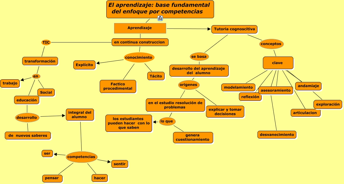 Este Cmap, tiene información relacionada con: CAPITULO-1, clave ???? asesoramiento, clave ???? modelamiento, educación desarrollo de nuevos saberes, clave ???? desvanecimiento, en continua construccion conocimiento Tácito, en continua construccion conocimiento Explícito, educación desarrollo integral del alumno, Tutoria cognoscitiva se basa desarrollo del aprendizaje del alumno, clave ???? exploración, integral del alumno competencias ser, Tutoria cognoscitiva conceptos clave, en el estudio resolución de problemas lo que los estudiantes pueden hacer con lo que saben, desarrollo del aprendizaje del alumno origenes explicar y tomar decisiones, clave ???? articulacion, integral del alumno competencias sentir, clave ???? reflexión, desarrollo del aprendizaje del alumno origenes en el estudio resolución de problemas, en continua construccion TIC transformación, integral del alumno competencias hacer, en continua construccion conocimiento Factico procedimental