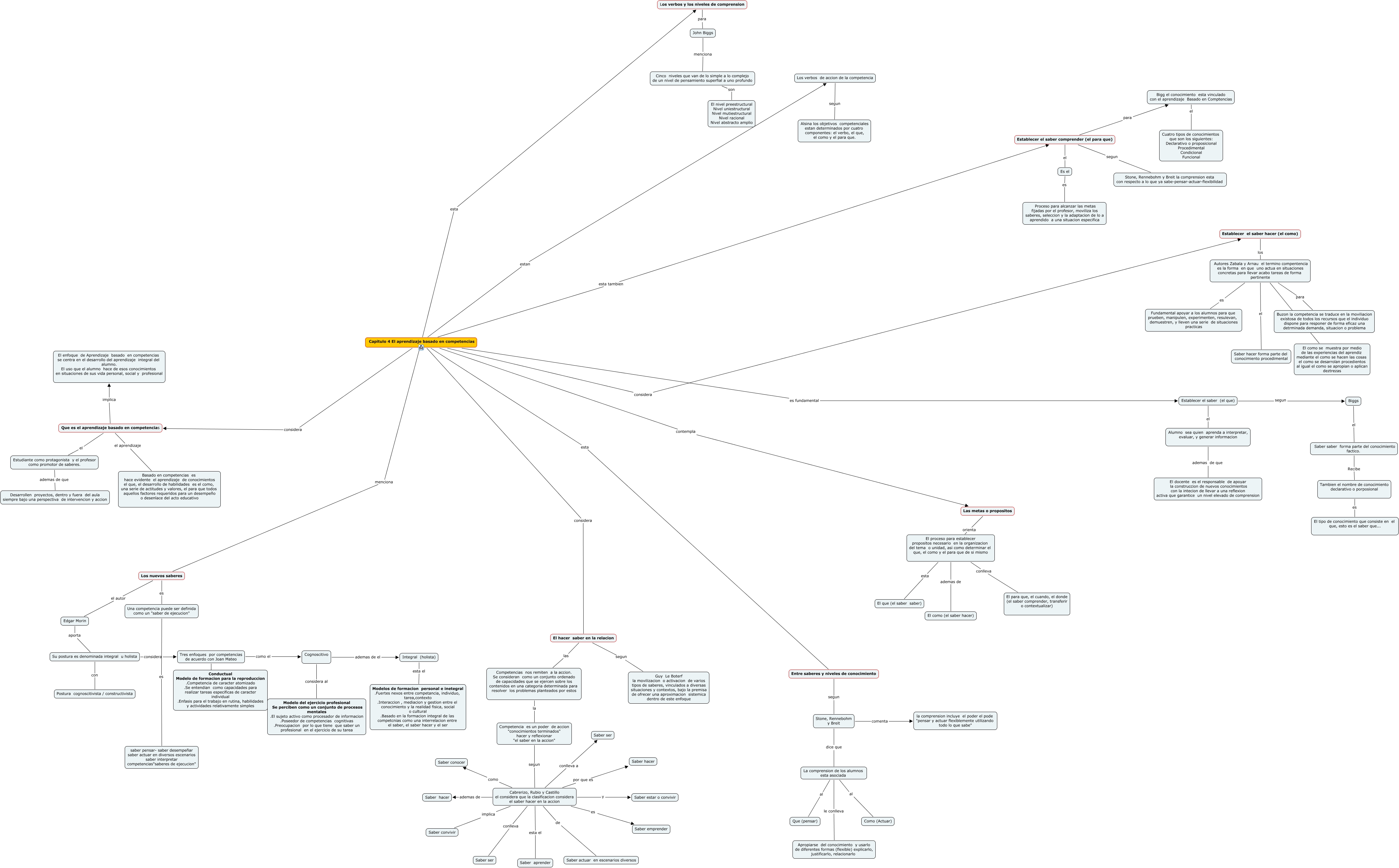 Este Cmap, tiene información relacionada con: Capitulo 4 El aprendizaje basado en competencias, Una competencia puede ser definida como un "saber de ejecucion" es saber pensar- saber desempeñar saber actuar en diversos escenarios saber interpretar competencias"saberes de ejecucion", Capitulo 4 El aprendizaje basado en competencias es fundamental Establecer el saber (el que), La comprension de los alumnos esta asociada le conlleva Apropiarse del conocimiento y usarlo de diferentes formas (flexible) explicarlo, justificarlo, relacionarlo, Establecer el saber comprender (el para que) el Es el, Las metas o propositos orienta El proceso para establecer propositos necesario en la organizacion del tema o unidad, asi como determinar el que, el como y el para que de si mismo, Entre saberes y niveles de conocimiento segun Stone, Rennebohm y Breit, Capitulo 4 El aprendizaje basado en competencias considera Que es el aprendizaje basado en competencias, Bigg el conocimiento esta vinculado con el aprendizaje Basado en Comptencias el Cuatro tipos de conocimientos que son los siguientes: Declarativo o proposicional Procedimental Condicional Funcional, Establecer el saber (el que) segun Biggs, Tres enfoques por competencias de acuerdo con Joan Mateo como el Cognoscitivo, Tres enfoques por competencias de acuerdo con Joan Mateo ???? Conductual Modelo de formacion para la reproduccion .Competencia de caracter atomizado .Se entendian como capacidades para realizar tareas especificas de caracter individual .Enfasis para el trabajo en rutina, habilidades y actividades relativamente simples, La comprension de los alumnos esta asociada al Como (Actuar), Cabrerizo, Rubio y Castillo el considera que la clasificacion considera el saber hacer en la accion y Saber estar o convivir, Establecer el saber hacer (el como) los Autores Zabala y Arnau el termino compentencia es la forma en que uno actua en situaciones concretas para llevar acabo tareas de forma pertinente, Autores Zabala y Arnau el termino compentencia es la forma en que uno actua en situaciones concretas para llevar acabo tareas de forma pertinente para Buzon la competencia se traduce en la moviliacion existosa de todos los recursos que el individuo dispone para responer de forma eficaz una detrminada demanda, situacion o problema, Cabrerizo, Rubio y Castillo el considera que la clasificacion considera el saber hacer en la accion implica Saber convivir, Su postura es denominada integral u holista con Postura cognoscitivista / constructivista, John Biggs menciona Cinco niveles que van de lo simple a lo complejo de un nivel de pensamiento superfial a uno profundo, Competencia es un poder de accion "conocimientos terminados" hacer y reflexionar "el saber en la accion" segun Cabrerizo, Rubio y Castillo el considera que la clasificacion considera el saber hacer en la accion, Los verbos de accion de la competencia segun Alsina los objetivos competenciales estan determinados por cuatro componentes: el verbo, el que, el como y el para que.