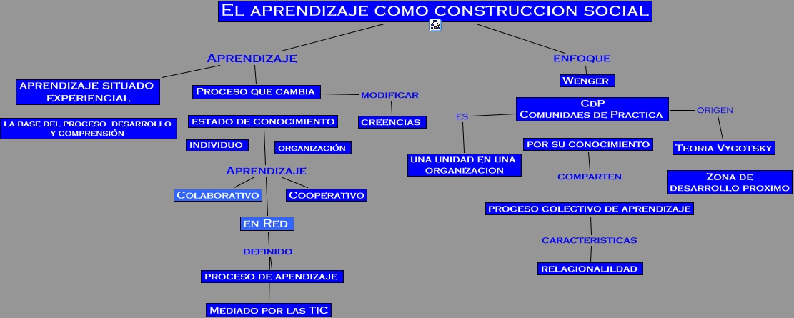 Este Cmap, tiene información relacionada con: CAP 1.2, en Red definido Mediado por las TIC, El aprendizaje como construccion social enfoque Wenger, CdP Comunidaes de Practica origen Teoria Vygotsky, Proceso que cambia modificar creencias, estado de conocimiento Aprendizaje en Red, estado de conocimiento Aprendizaje Colaborativo, CdP Comunidaes de Practica es una unidad en una organizacion, proceso colectivo de aprendizaje caracteristicas relacionalildad, en Red definido proceso de apendizaje, por su conocimiento comparten proceso colectivo de aprendizaje, estado de conocimiento Aprendizaje Cooperativo, El aprendizaje como construccion social Aprendizaje aprendizaje situado experiencial, El aprendizaje como construccion social Aprendizaje Proceso que cambia